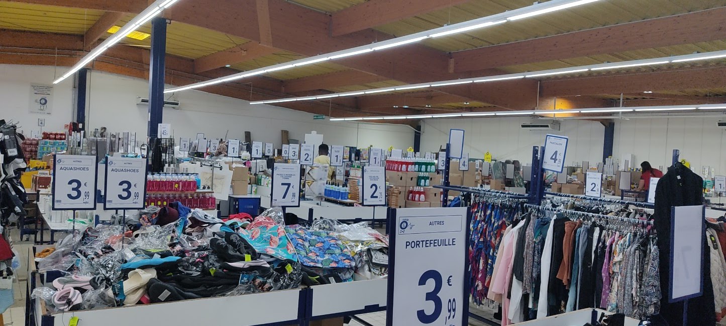 Magasin produits moins cher et de tous , habits de marques, chaussures. Lessive et alimentation etc ...