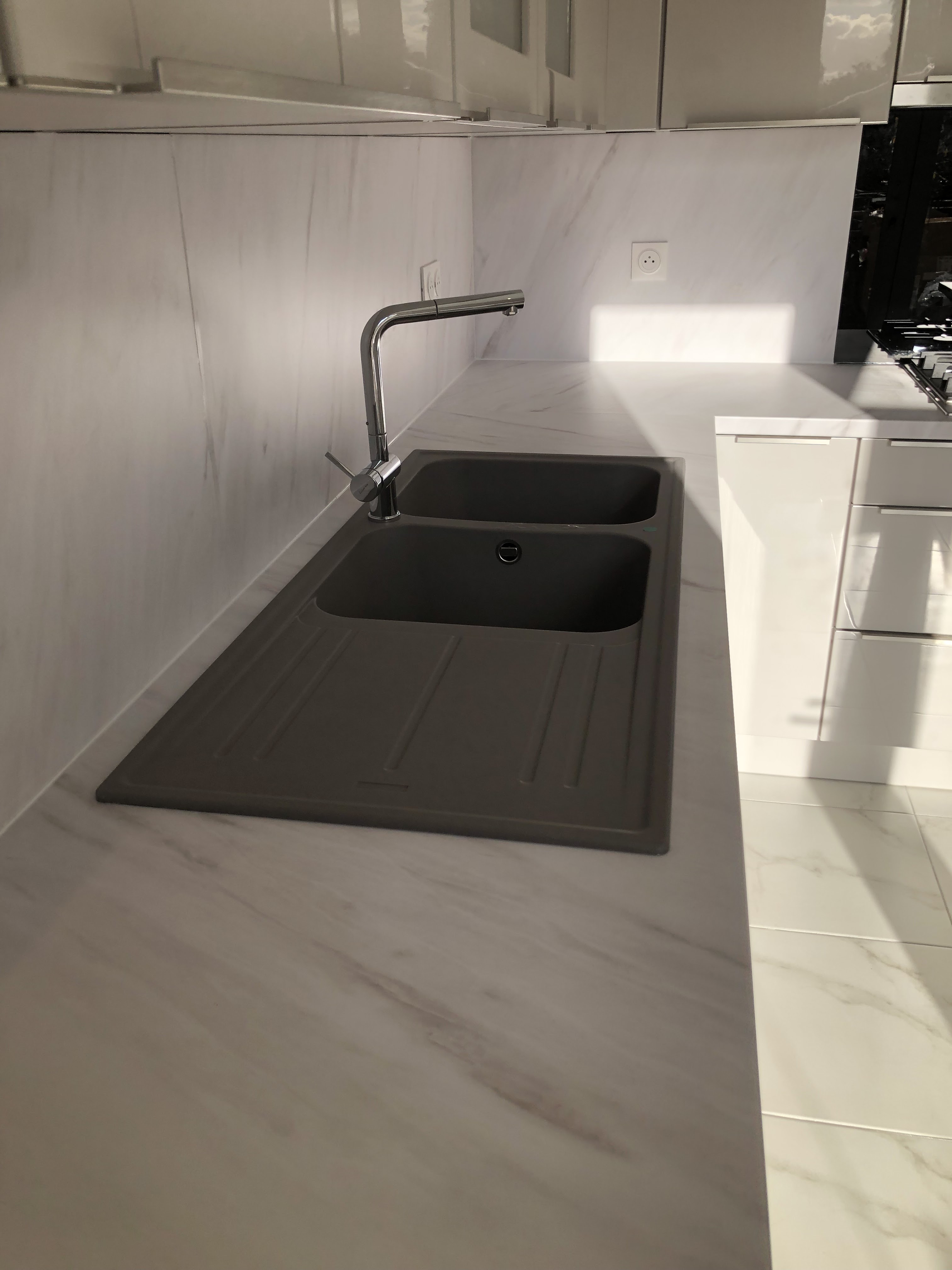 Une équipe formidable, Angela, Ismael et leurs poseurs, travail de professionnel, date respecter, Tarif imbattable, voici une partie de ma cuisine Nuance.