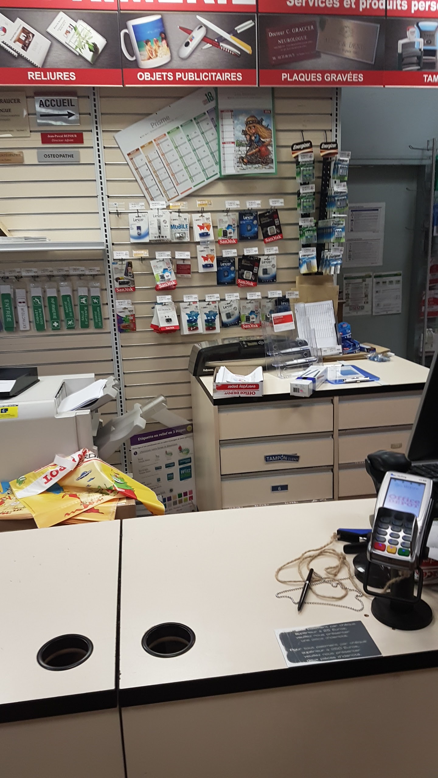 Petit office dépôt qui dépanne pas mal. En ce qui me concerne j’y vais pour les cartouches. Le personnel est agréable et en 5 mn la transaction est faite, simple et rapide. Aucune mésaventure. Cependant, le prix est excessif, les sous-marques ne sont pas mis en avant, s’il y’en a, donc je recommande d’y venir pour du dépannage.