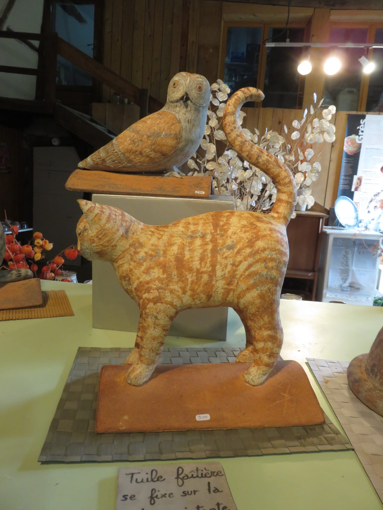Nous changeons assez souvent de maison pour raison professionnelle. Nous avons l'habitude d'installer un chat en grés sur la faîtage de la maison et d'appeler celle-ci le chat perché. Et c'est toujours avec beaucoup de plaisir que nous nous rendons à la poterie Allouin Merccion pour chercher notre chat. De plus, vous trouverez de magnifiques poteries.