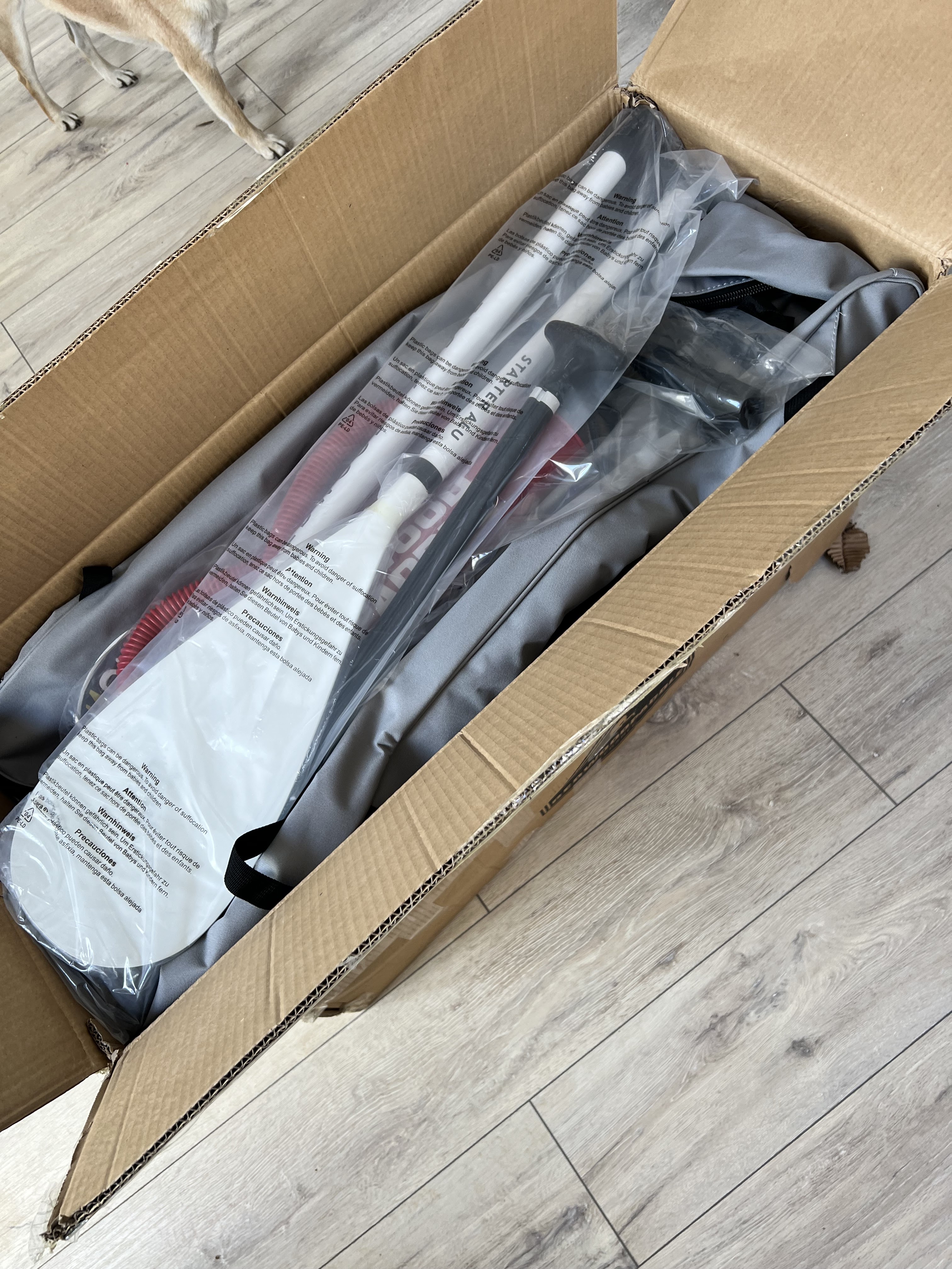 Expedition dans les délais. Très bonne protection du paddle . Bonne qualité de finition . Mais aucune notice , notamment pour la valve qu'il ne faut pas modifier . Ce modèle est stable . J'ai choisi un peu trop court (9') par rapport à mon poids .