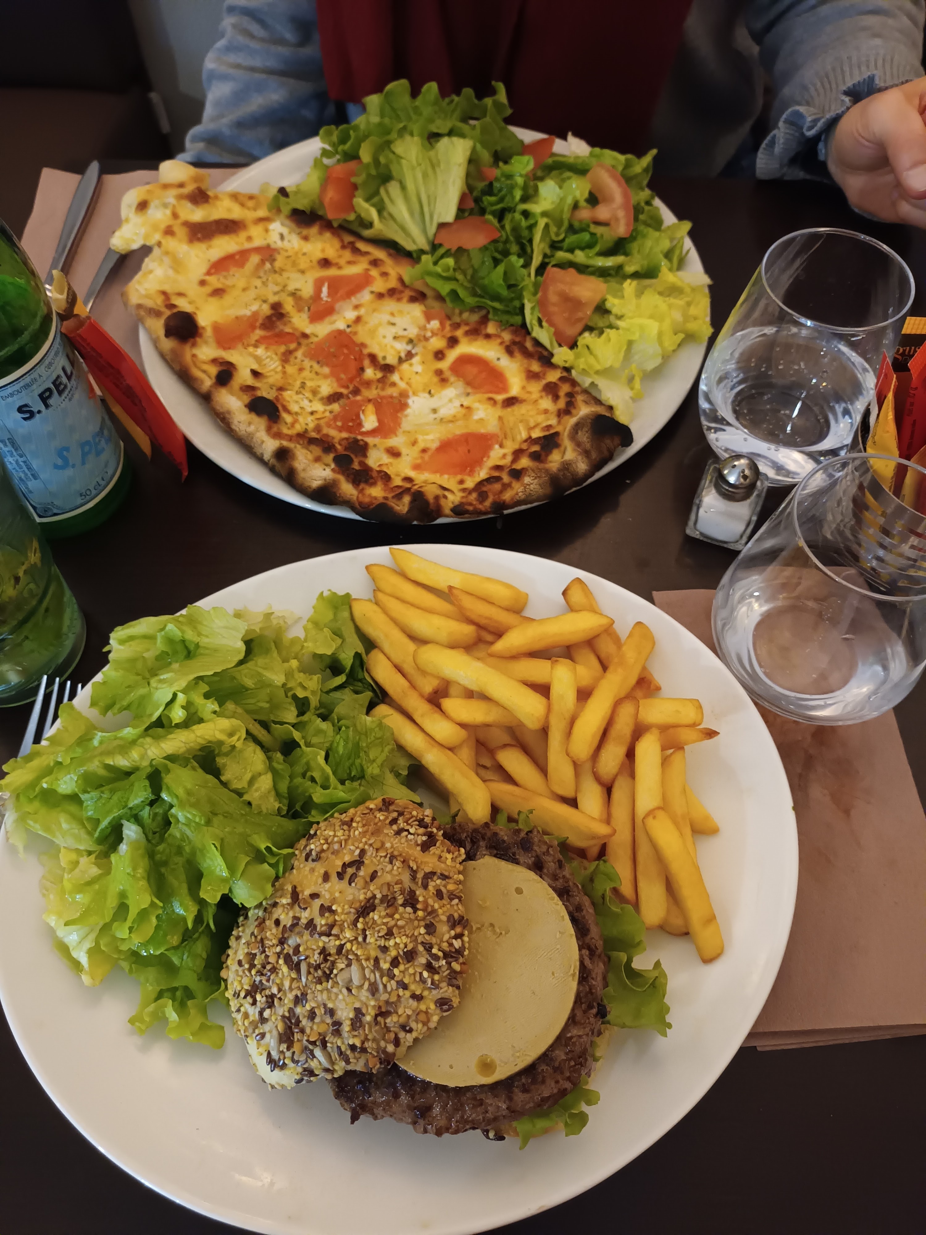 J’étais venue une fois en été, nous avions mangé sur la terrasse. C’était génial. Là… très déçue. Fortement bruyant à l’intérieur, erreur dans les vins inscrits et reçus, un peu trop de familiarité des serveuses qu’on ne connaît pas. Les plats… excellents rien à dire. La pâte des pizzas est divine. Le hamburger est très bon. Pour le dessert…sans plus. Je suis mitigée pour revenir… ou qu’en été