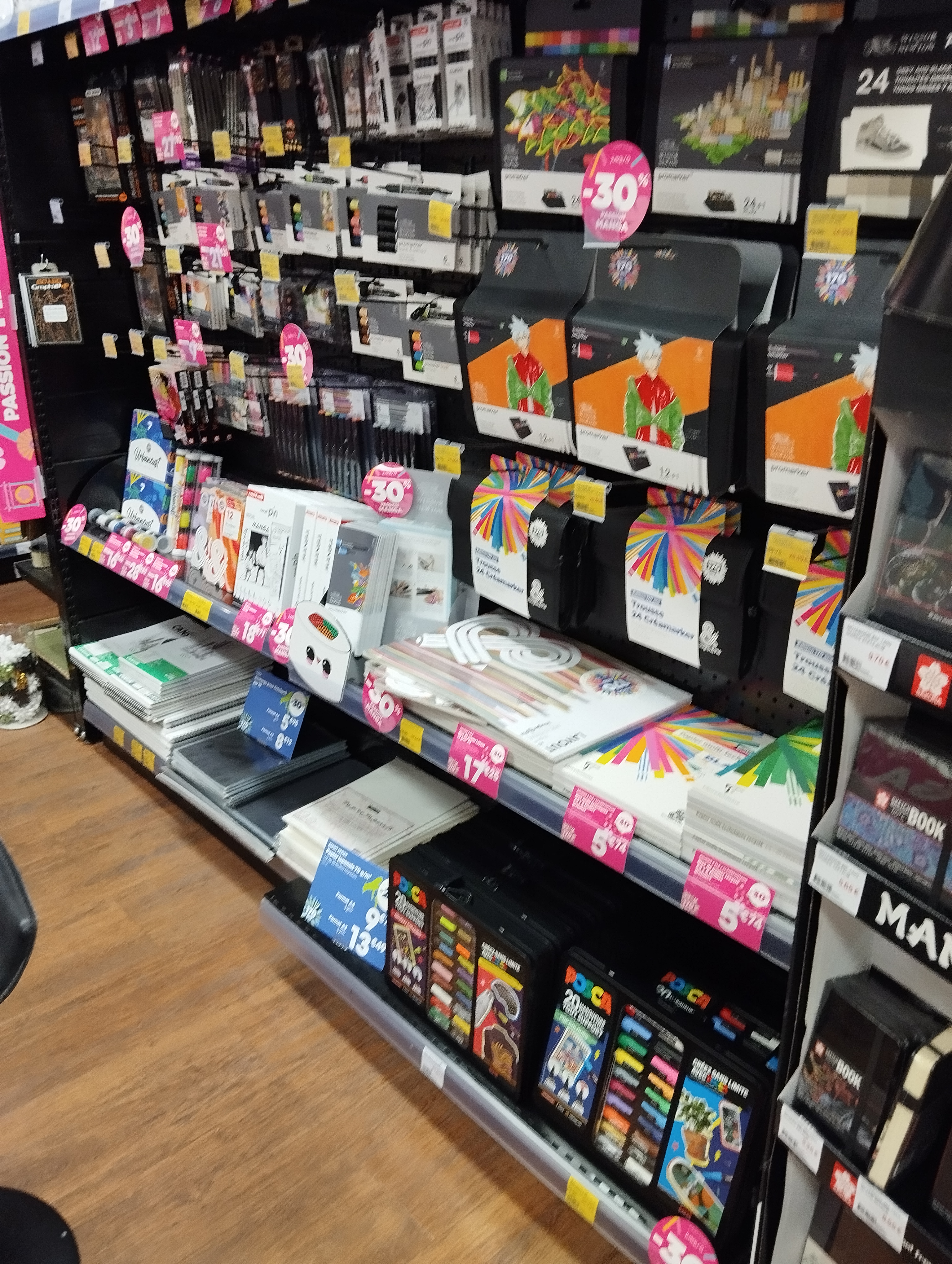 On y trouve tout en papier, matériel de dessin, peinture, etc.