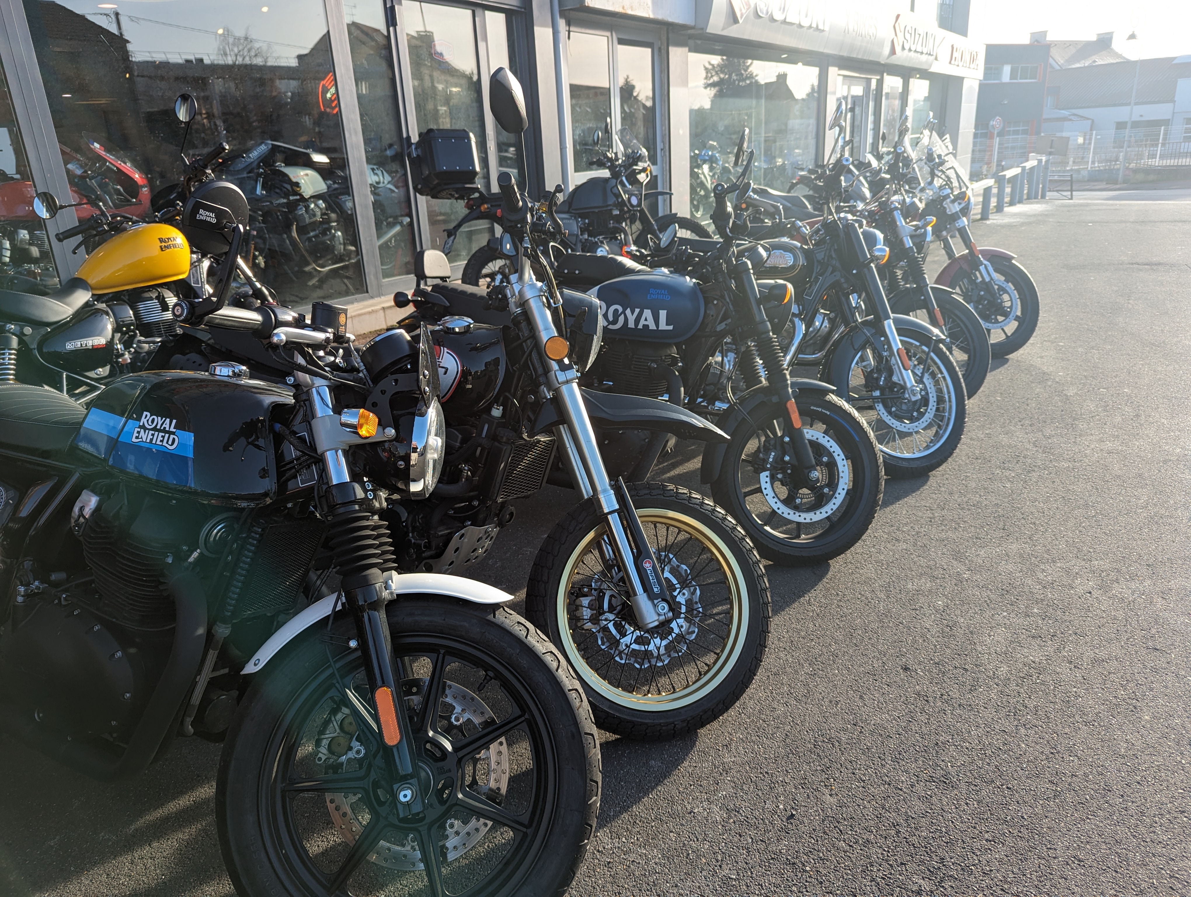 Une concession pour 4 ou 5 marques. J’ai acheté mon Side car Mash « Side force » et ma Royal Enfield Himalayan chez eux. C’est beau, le personnels et souriant et sympa, le café est offert ….