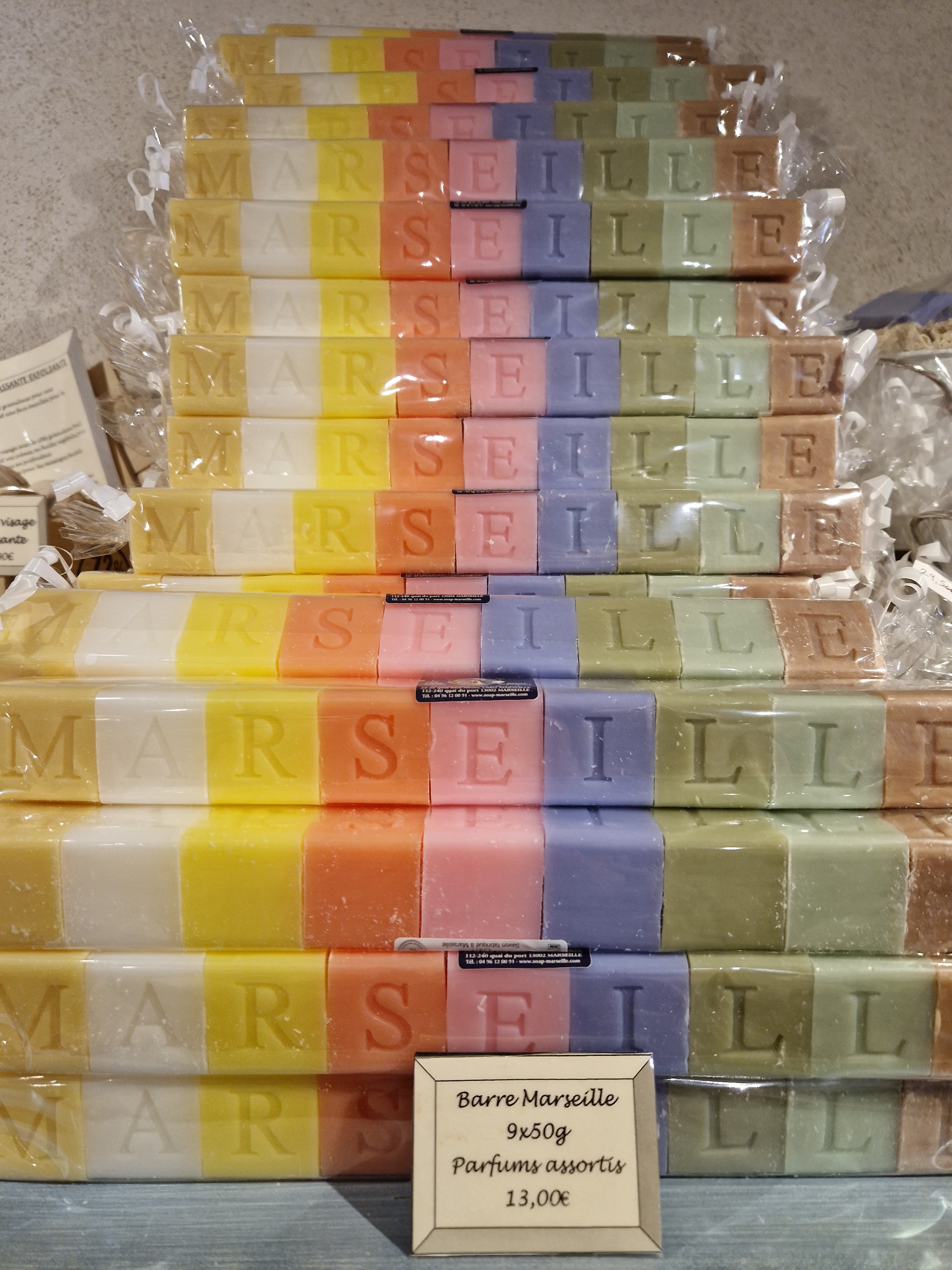 Entièrement approvisionné en divers parfums de savon de Marseille.