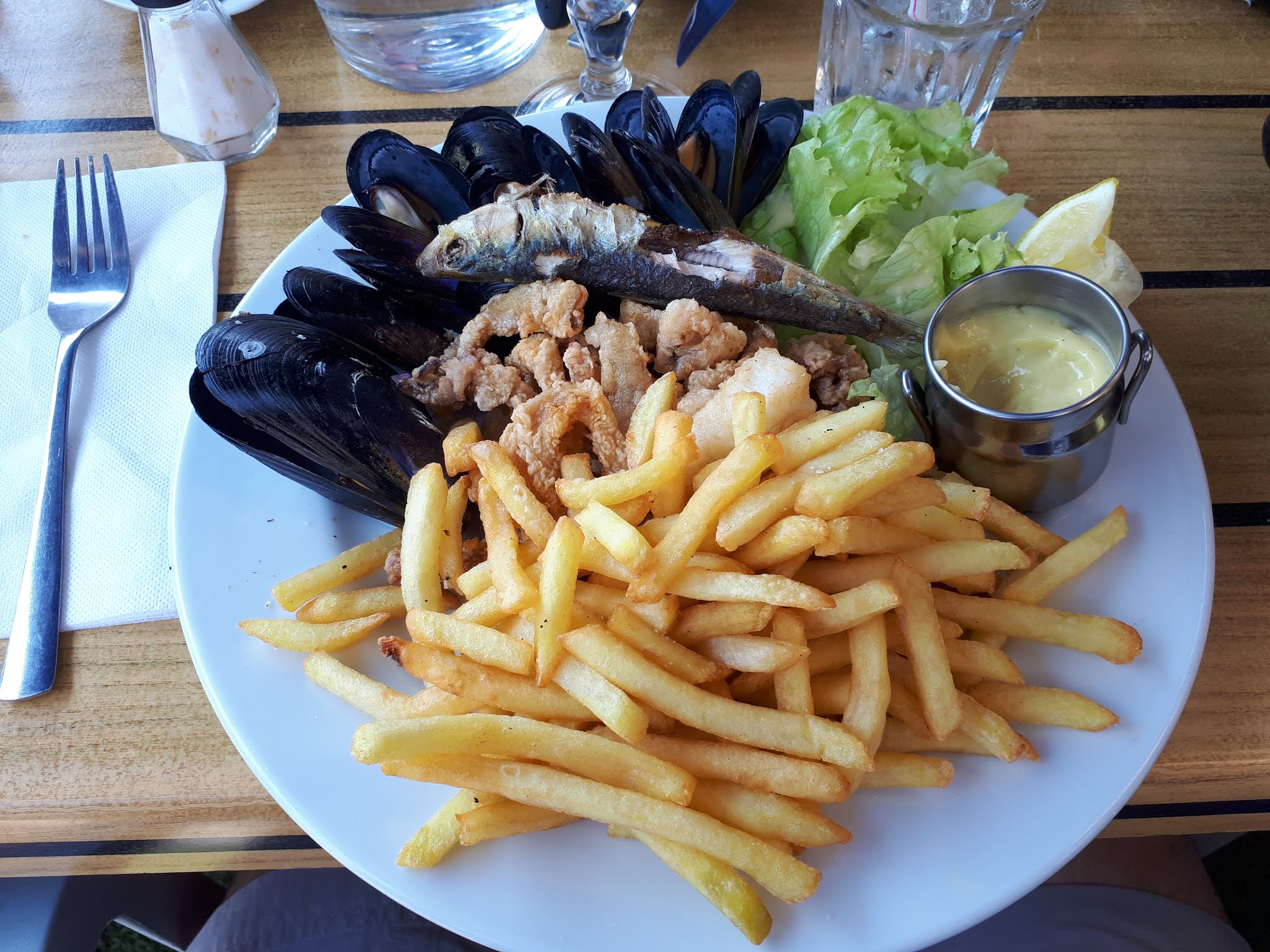 Passez votre chemin!!! le poisson, les frites sont congelés, c'est lamentable quand on est situé si proche du port. Restaurant attrape touristes!!! Toilettes de l'horreur beurk