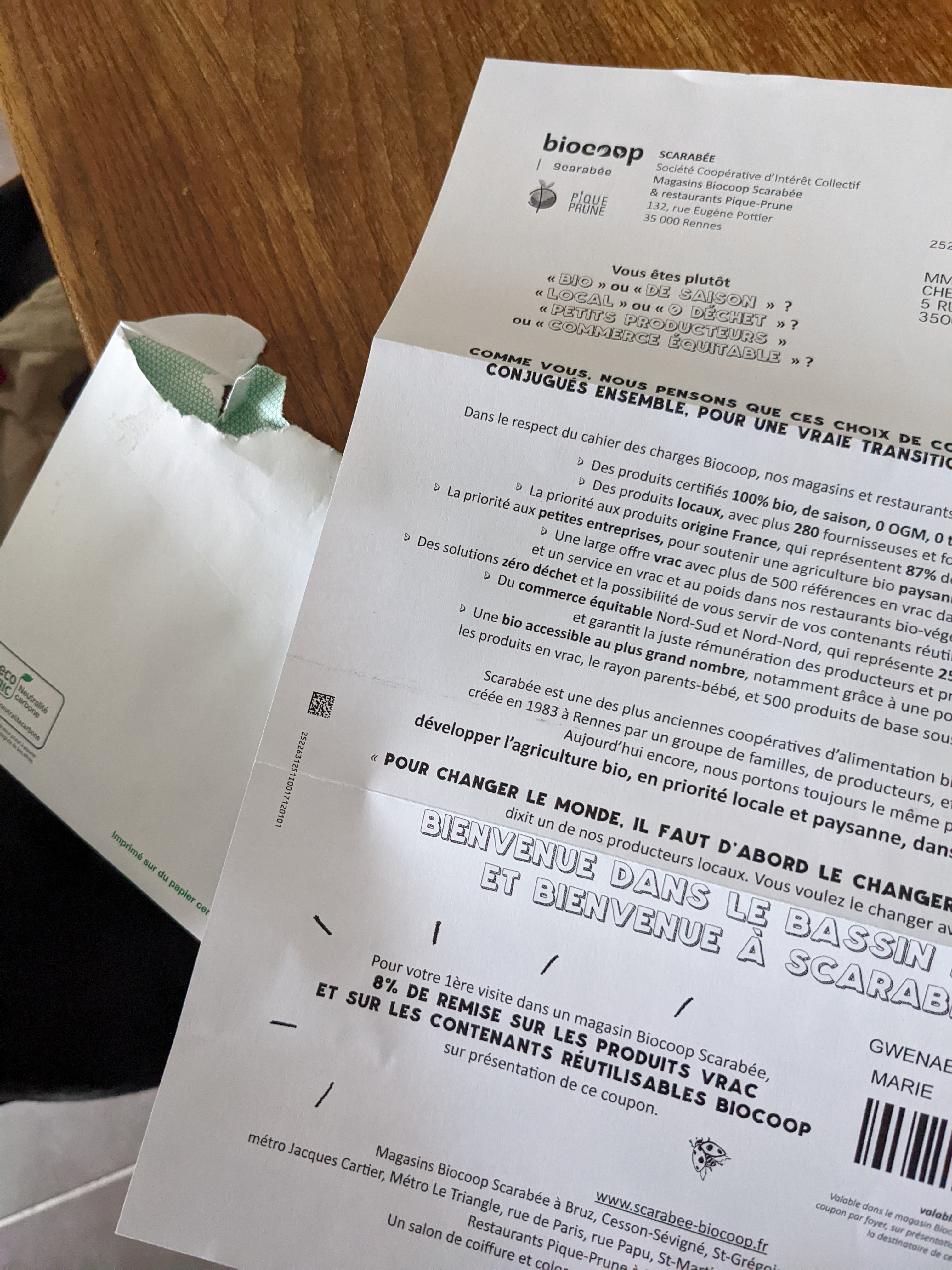 La biocoop qui envoi de la pub par courrier... On est où là ? Pour répondre à votre commentaire. La Biocoop achète le fichier des nouveaux arrivant à Rennes via les services postaux pour envoyer de la pub courrier pour présenter ses magasins. DONC non seulement vous êtes au courant mais en plus vous choisissez délibérément de faire de la pub papier. Vous comprendrez aisément que cela m'énerve lorsque je reçoit une publicité de votre part adressé au nom d'un membre décédé de ma famille pour lequel j'ai mis en place une redirection de courrier via les service postaux.... Il y a d'autres façon de faire de la publicité.