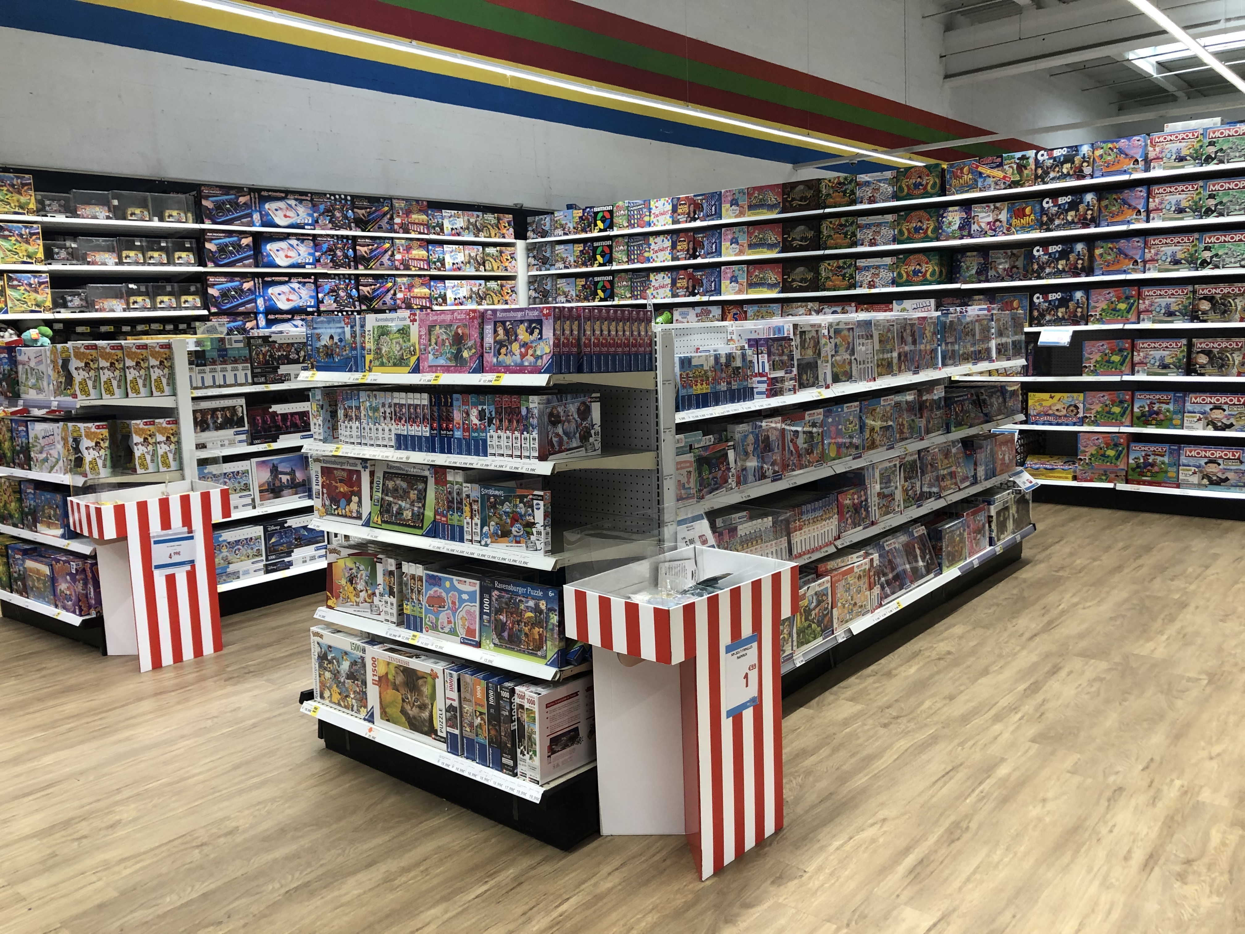 Organisation des rayons parfaites. Les étagères sont pleines et bien rangées. Les prix sont moins élevés que dans notre région (Haute-Savoie). Certains jouets sont parfois introuvables en magasin chez la concurrence, on les a trouvé ici. Bravo, j’espère que ça ne changera pas !