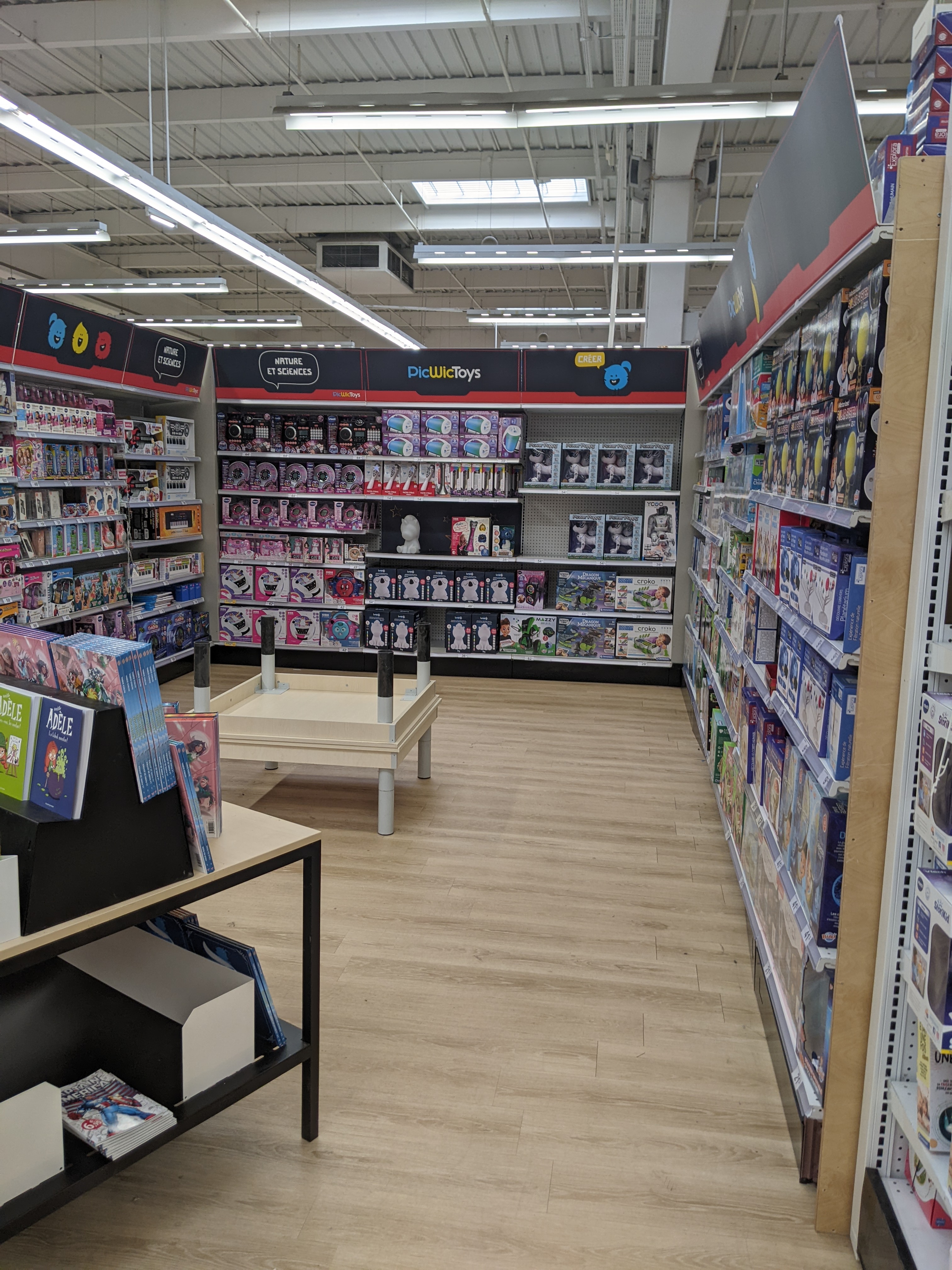 Bon magasin ou on peut trouver un peu de tout. Les rayons sont propres et bien agencés. Cependant, les prix sont beaucoup plus chers qu'en grande surface alimentaire (comme carrefour), par exemple un jeu vidéo à 60e chez picwic, à 45e ailleurs. Et ce n'est qu'un seul exemple... Le personnel à l'accueil est aimable, mais en revanche en rayon, les employés manquent d'amabilité (sans doute à cause du rush de Noël et de la situation actuelle). Dommage... De plus, suite à une commande internet (lors du total confinement) j'ai eu le service client avec beaucoup de mal, environ 15 appels pour plus de deux heures d'attente. Sur ces appels j'ai eu un conseillé qui m'a mal conseillé, prétextant des bugs alors qu'on m'a confirmé que non... et n'a pas répondu à mes attentes, ce qui m'a valu 10 autres appels pour avoir une conseillère qui s'est démènée pour répondre à mes attentes et à ma situation. Enfin... J'espère que c'était une situation exceptionnelle parce que honnêtement ça ne donne pas envie d'acheter chez eux.