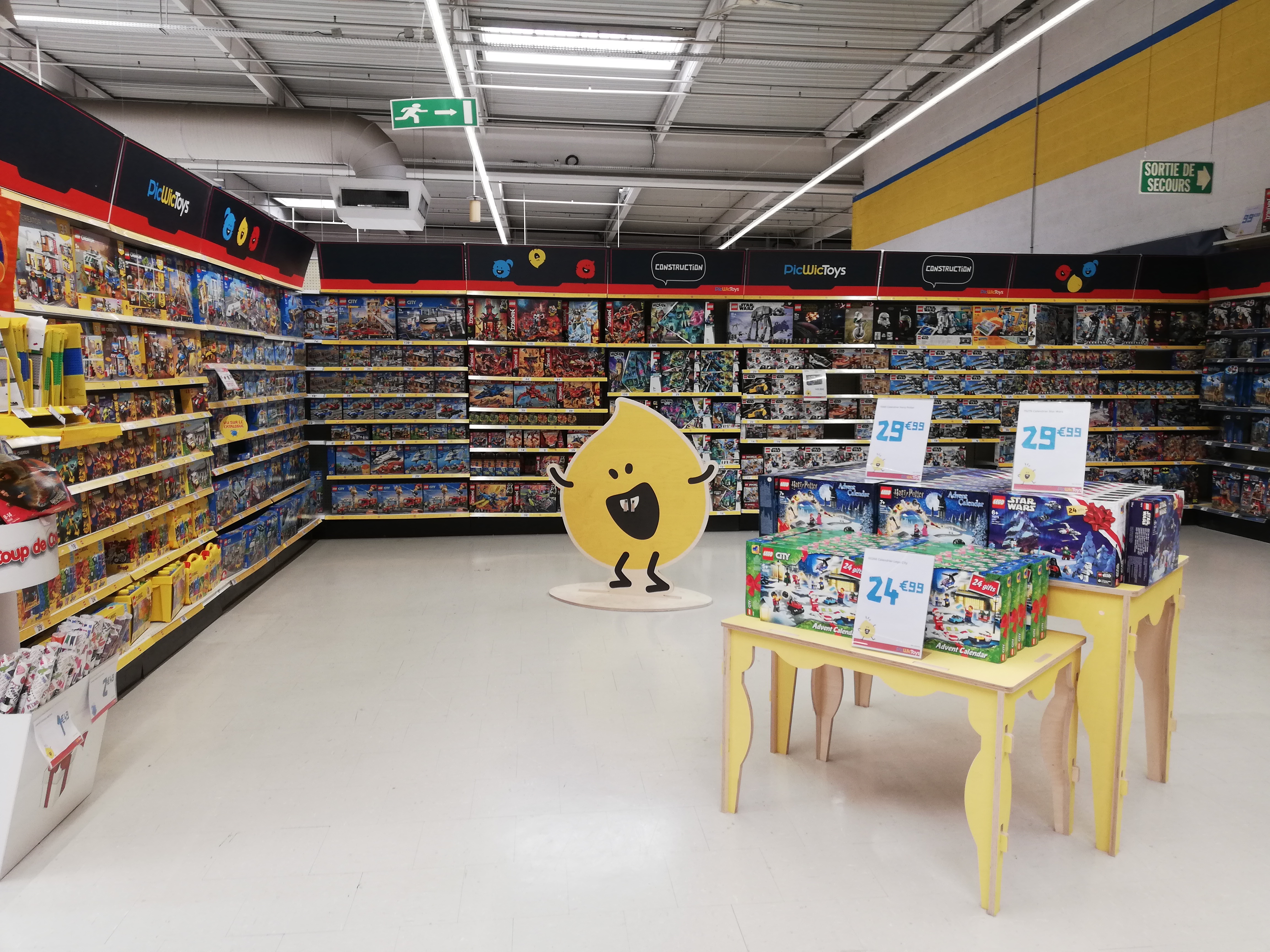 Un agencement digne d'un entrepôt de bricolage, c'est formidable, on se sens au travail même pour acheter du bonheur au enfant, et il y a pas vraiment de variétés dans les jouets et les univers, dommage et déprimant.