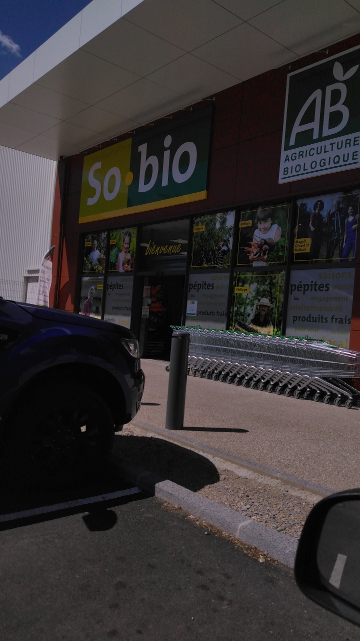 En allant en vacances je suis faire mes courses bio je suis tomber sur le so bio super propre prix attractif le personnel accueillant et les responsables super gentil . Je vous recommande à 100 pour 100 ce magasin.