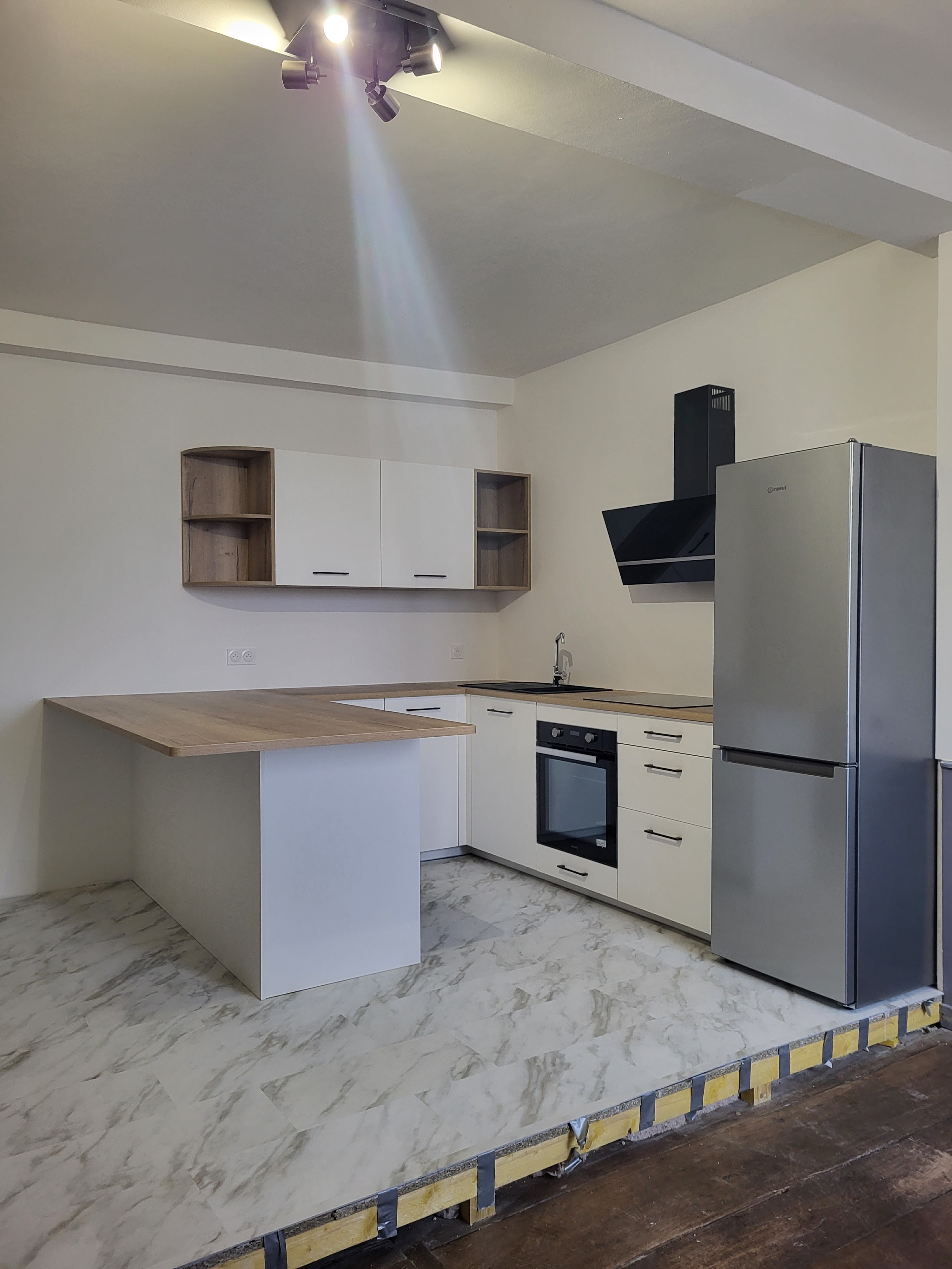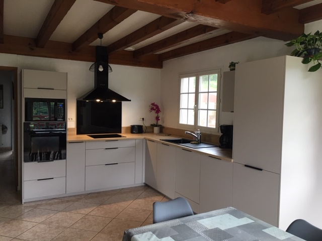 Merci Justine de votre suivi, toujours à l'écoute, prête à nous apporter toute précision. Merci Thomas pour le métré, la patience pour le nouveau calcul des cotes et pour la pose efficace et en bonne ambiance. Toute la famille est ravie de cette belle cuisine