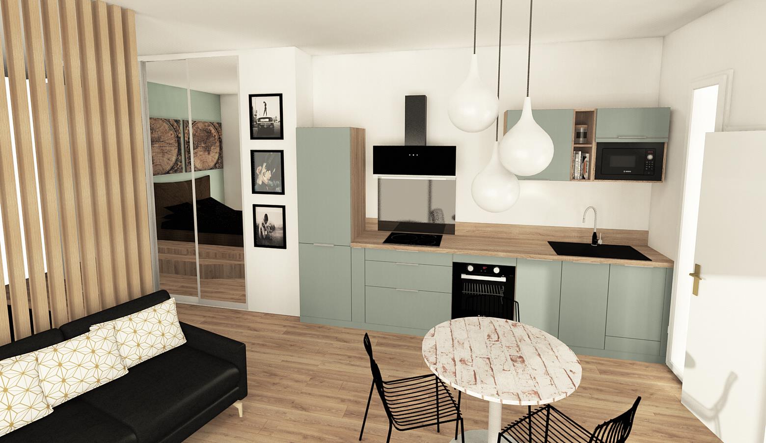 Merci à Aurélie pour son projet de cuisine pour un T2. A l'écoute de nos demandes, compétente et pertinente dans ses choix, elle a pris le temps de concevoir un plan intéressant, à la fois pour le coin cuisine et séjour/salon, dans la même gamme de meubles. Je la recommande si vous avez un projet. Vous ne serez pas déçus.