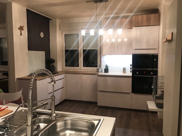 Très jolie rénovation de ma cuisine . Les poseurs au top . La commerciale Audrey A est réactive et de bons conseils . Avant très gris et après plus lumineux grâce au bois chêne vintage .