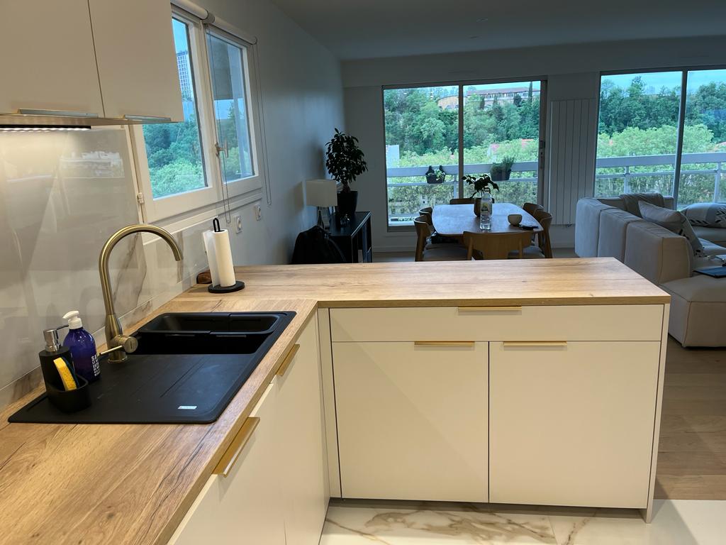 Le choix de la raison ! Une rénovation globale d'appartement à l'été 2023 nous imposait une nouvelle cuisine. La période étant marquée par une forte inflation sur les matières premières, cela a vite permis de comprendre qu'au delà du conseil et du professionnalisme d'Alexandre, c'était le choix de la raison qui allait primer. En effet, après plusieurs RDV (servant surtout à nous rassurer sur l'implantation et le choix des options), les conditions tarifaires ont confirmé l'excellent rapport qualité/prix (dont des amis nous avaient parlé) tout en privilégiant en plus, une production en Rhône-Alpes, garantissant des emplois.