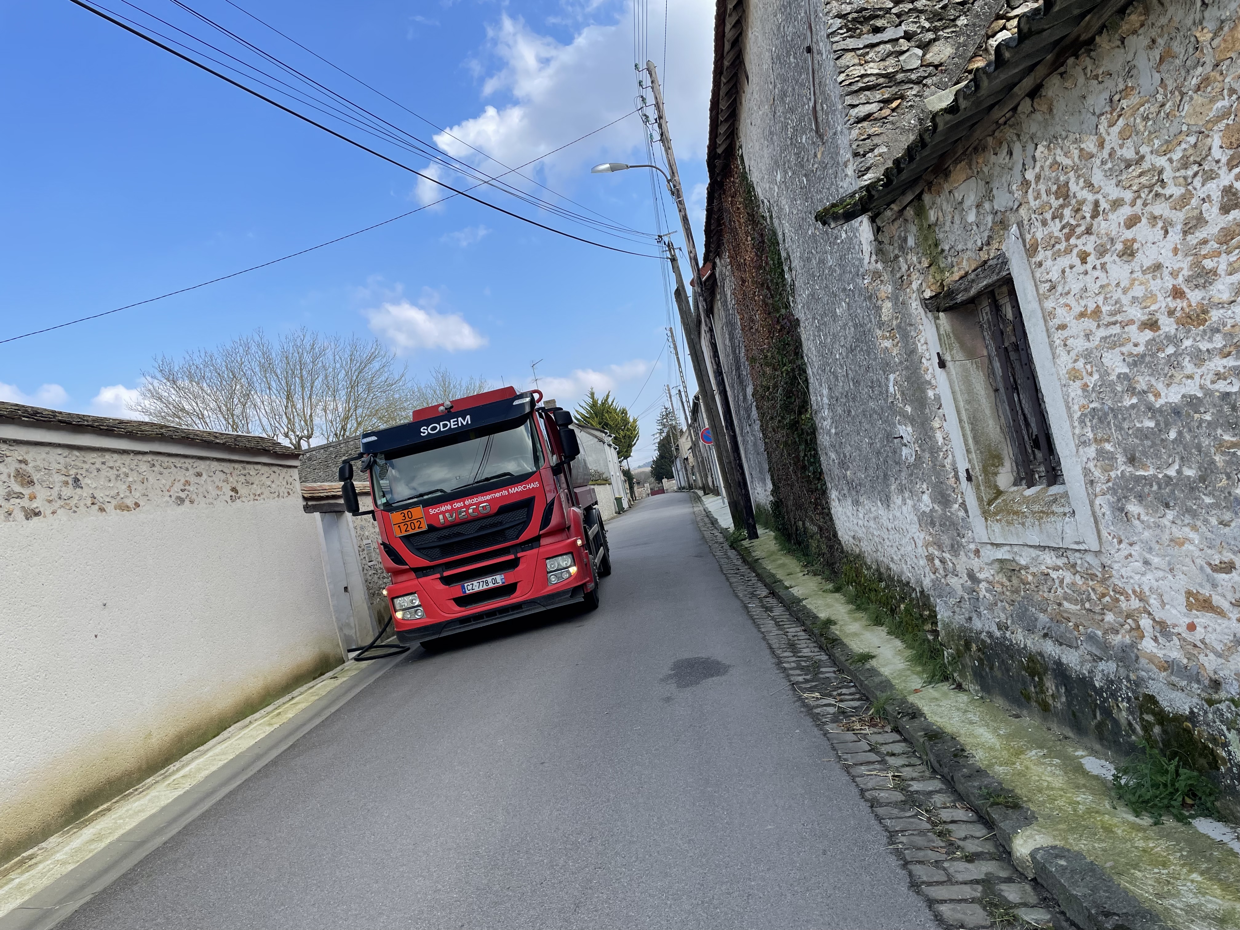 Voici comment cette société livre ces clients . Aujourd’hui un peu avant 14h à Bourdonné ce camion bloque une grande partie de la route , afin d’éviter de faire un détour de 20 minutes ou 50 mètres de marche arrière , je tente de me mettre à cheval sur le trottoir mais en vain , la jante de ma voiture neuve n’y échappera pas … Ce camion démontre un manque de civisme et une bien piètre image de la société