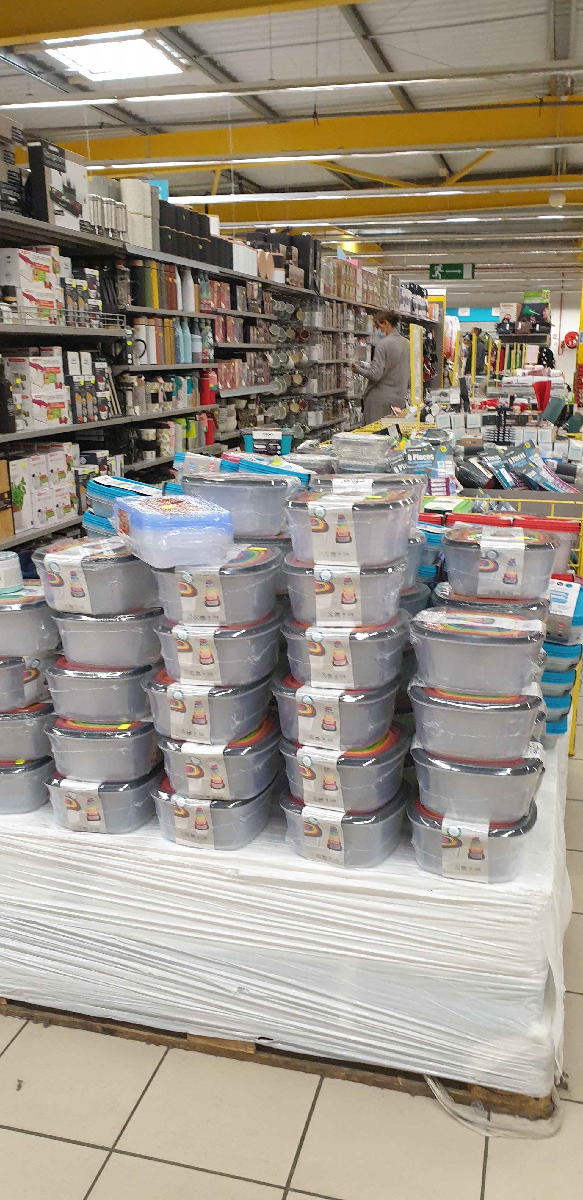 Enseigne de destockage où l'on trouve de tout à des prix intéressants. Je trouve que les allées sont assez petites, il est donc difficile de circuler avec une poussette ou tout simplement avec son panier.