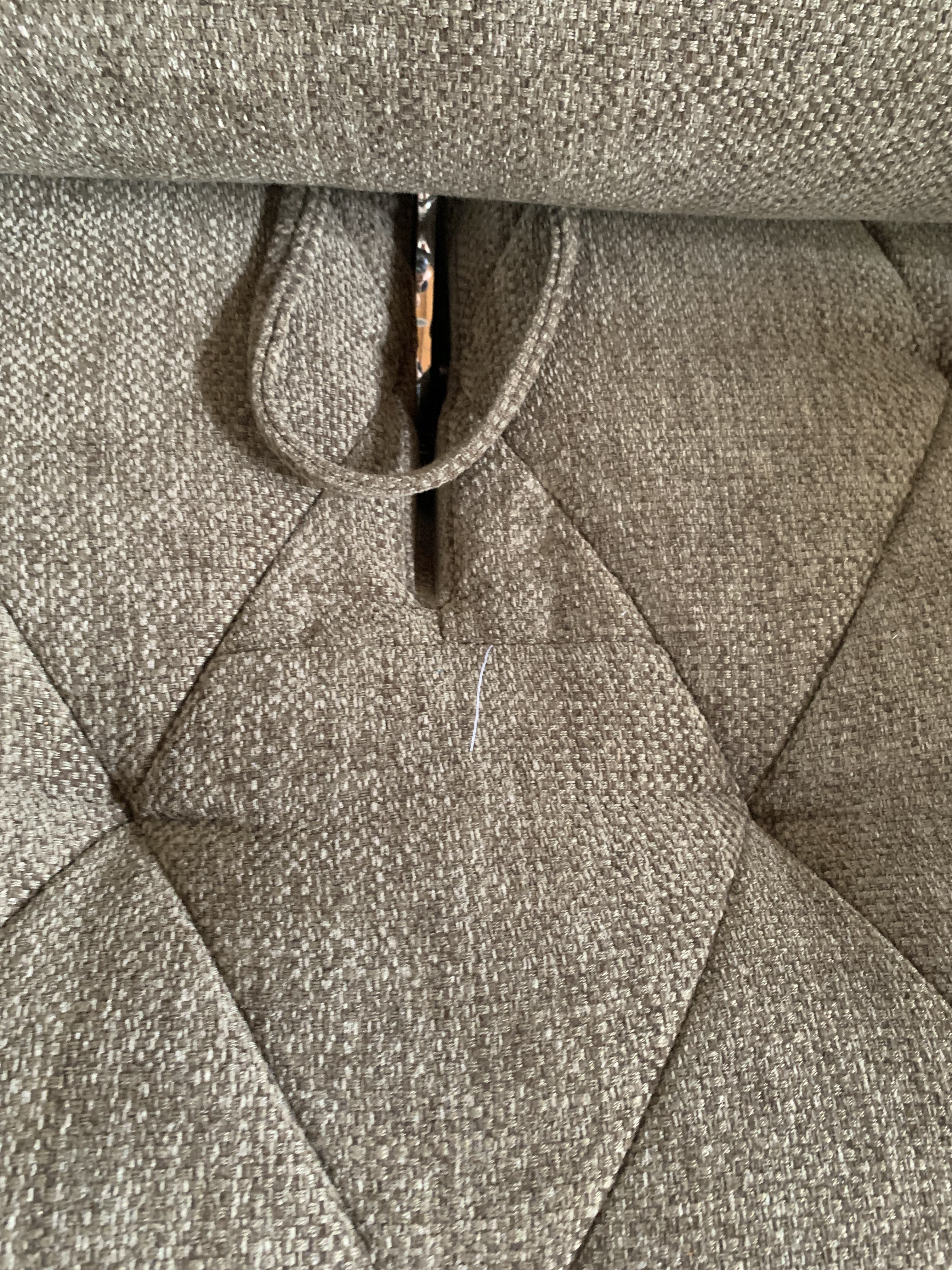 La tache au dos du canapé a été un peu nettoyée mais est toujours visible.