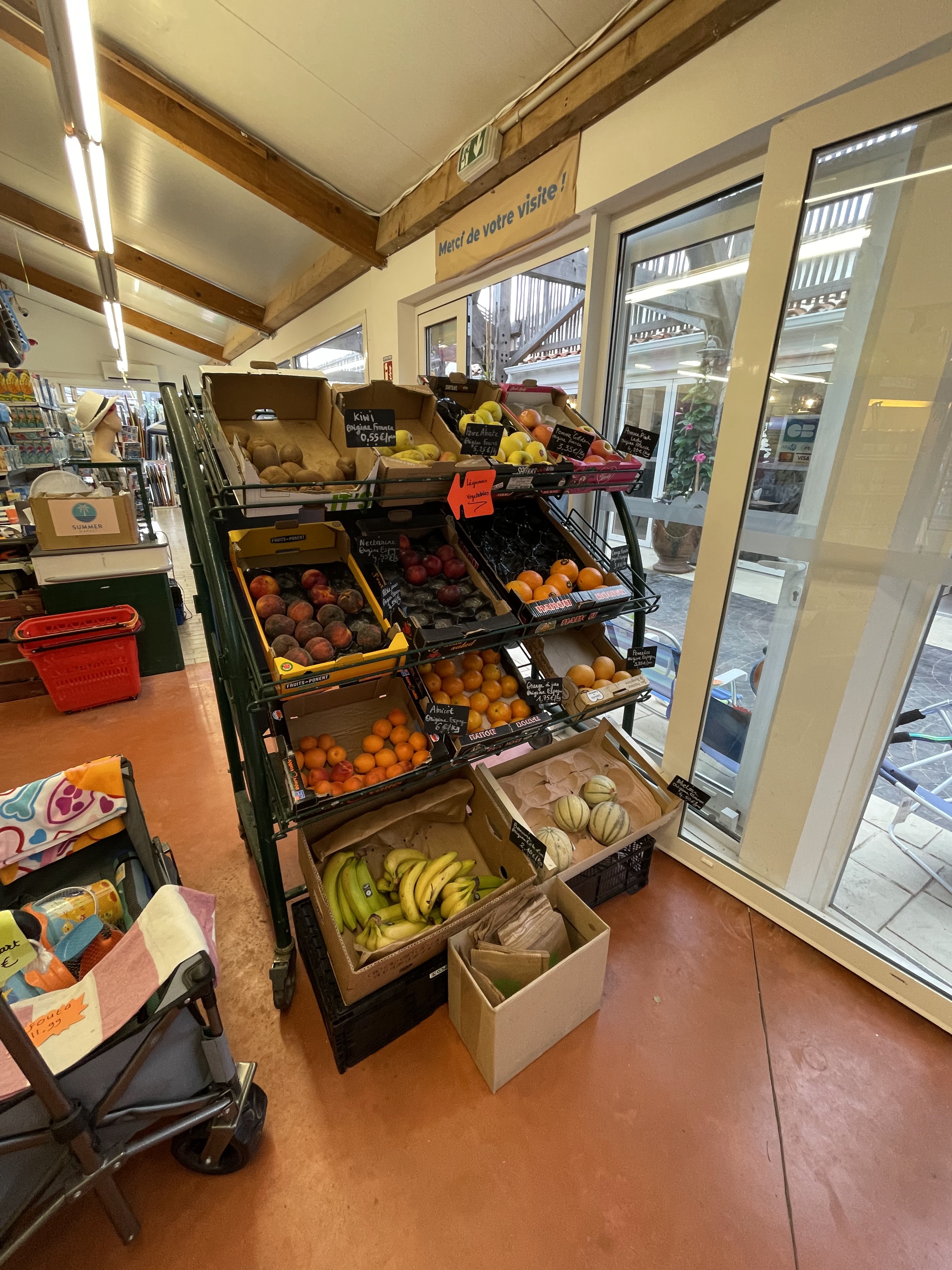 Marché d'été... C'est exagéré. Un petit supermarché peut-être plutôt comme ça