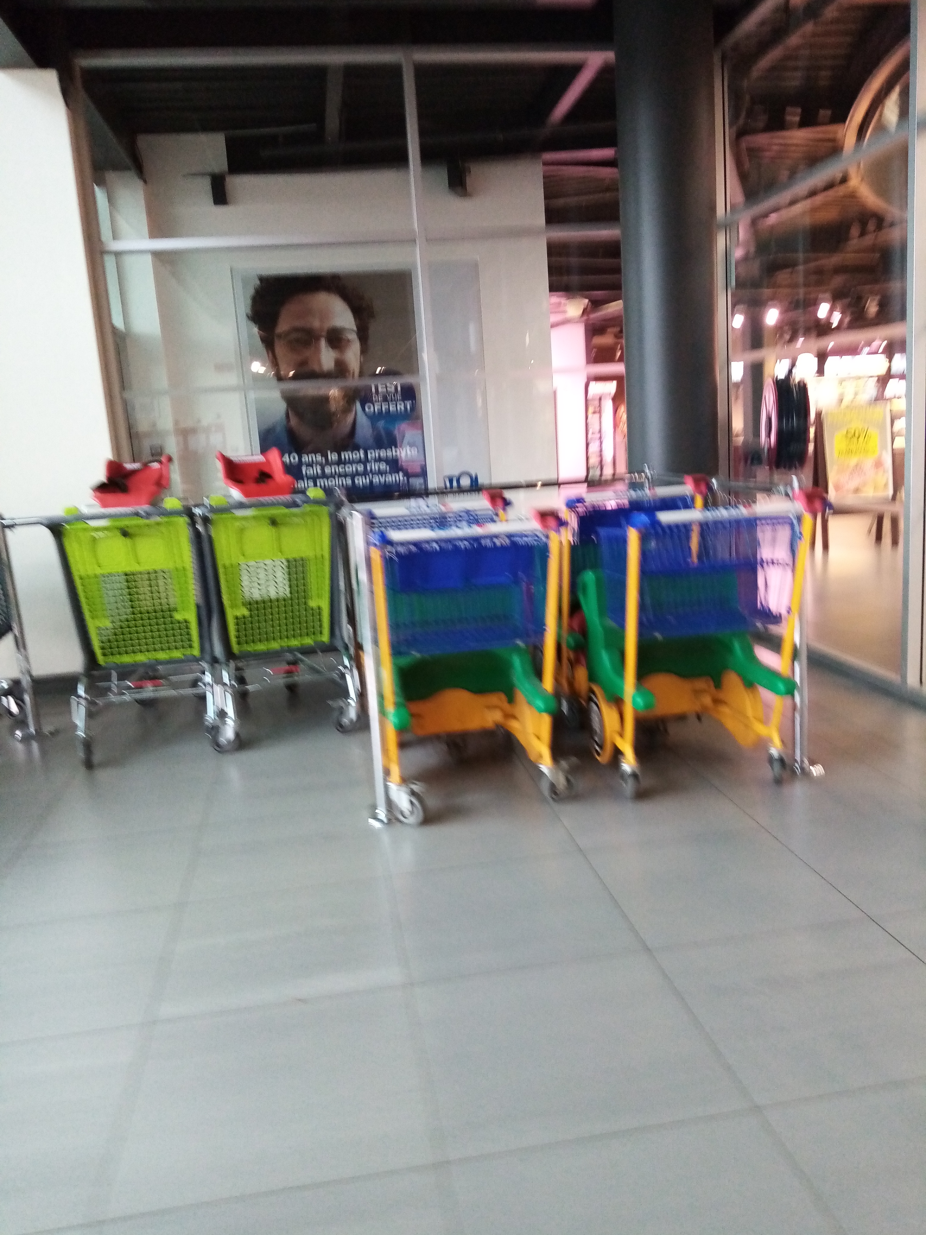 Galerie agréable, parfaite superficie pour faire les courses. Service restauration très bien, je conseille. Caddies en plastique top et en plus on y trouve des pailles en papier, bambou et inox, bravo