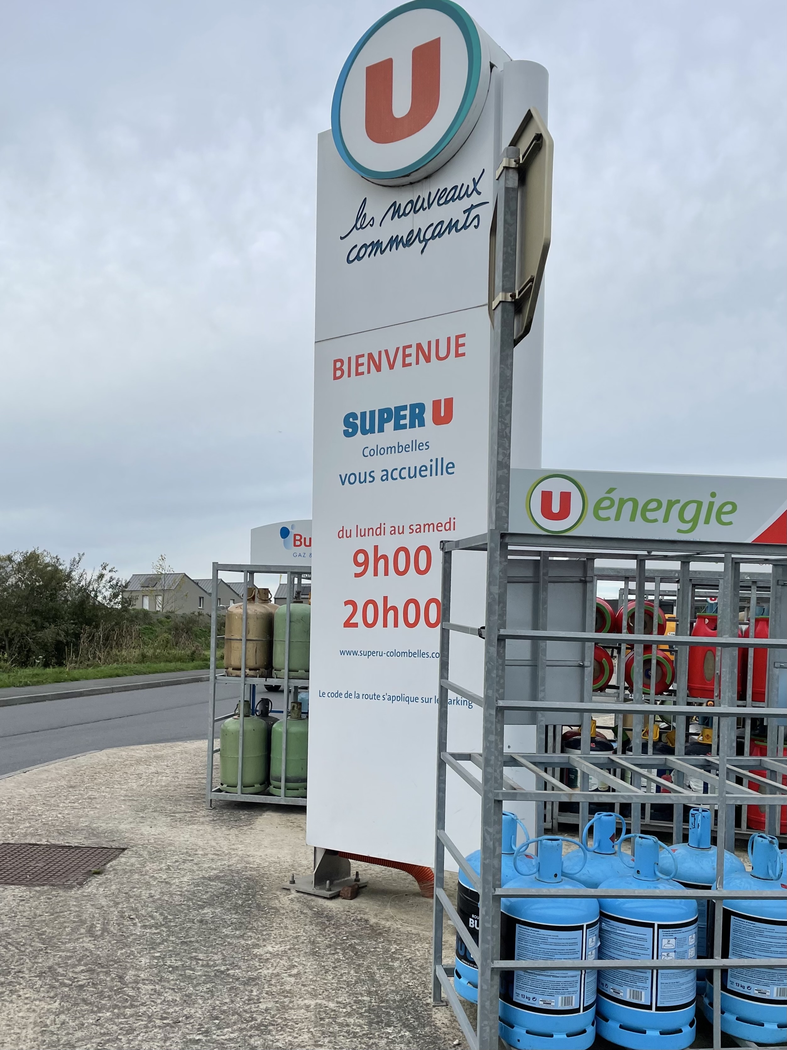 Super U de Colombelles avec divers services, notamment la station, le lavage auto et le Drive. Les bouteilles de gaz se trouve proche de la station d’essence. Pour sortir de la station, il faut contourner le bâtiment à l’arrière. Bon shopping !