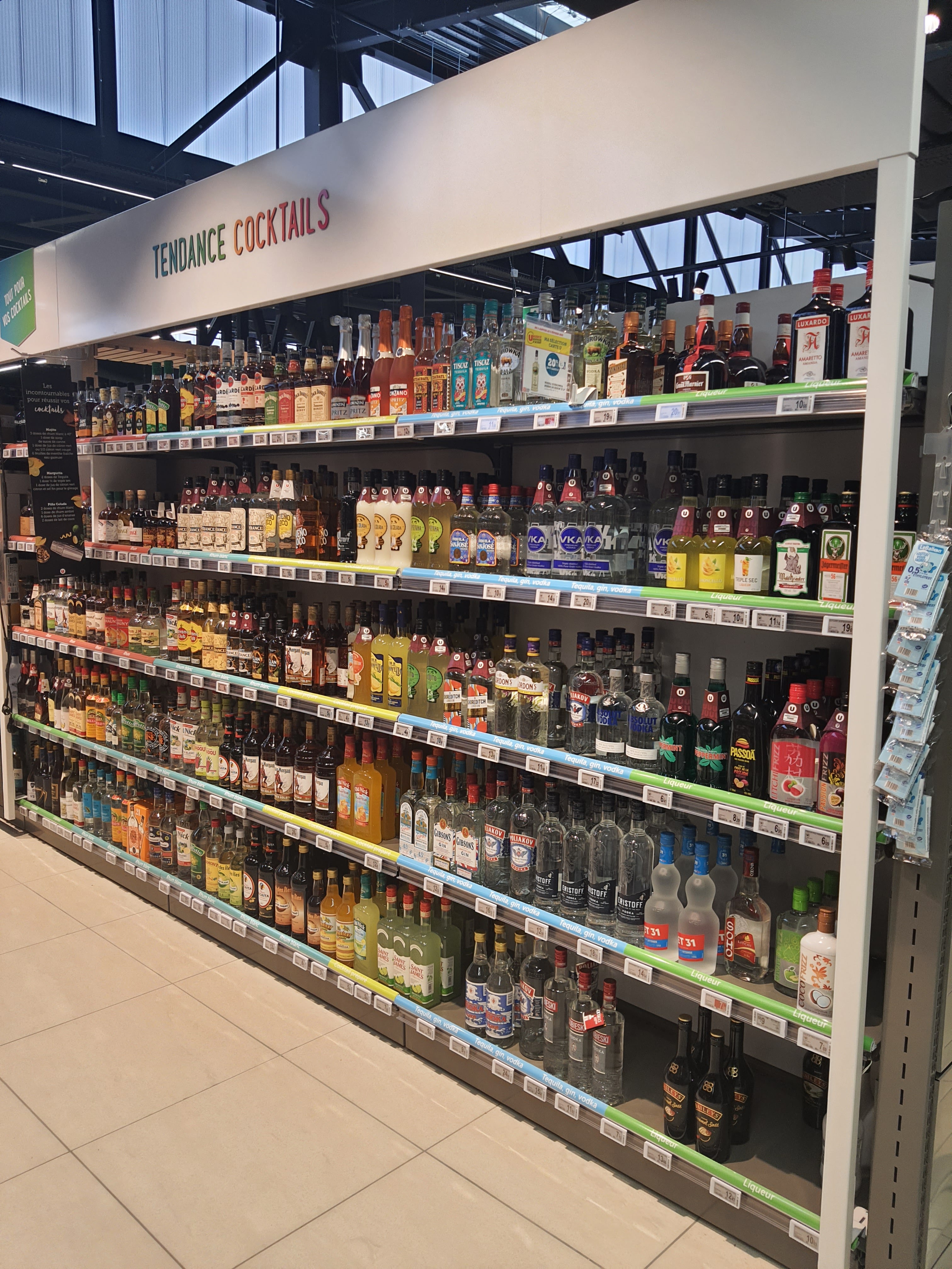 Nouvelle surface propre, bien éclairée et décorée. Il semble que les équipes ont encore besoin de rodage... J'ai trouvé une bouteille victime d'un coup de cutter dans mon pack. Malheureusement... Ce pack a quand même été placé en rayon. Si ce n'est financièrement pas grave, dans le principe, cela questionne...