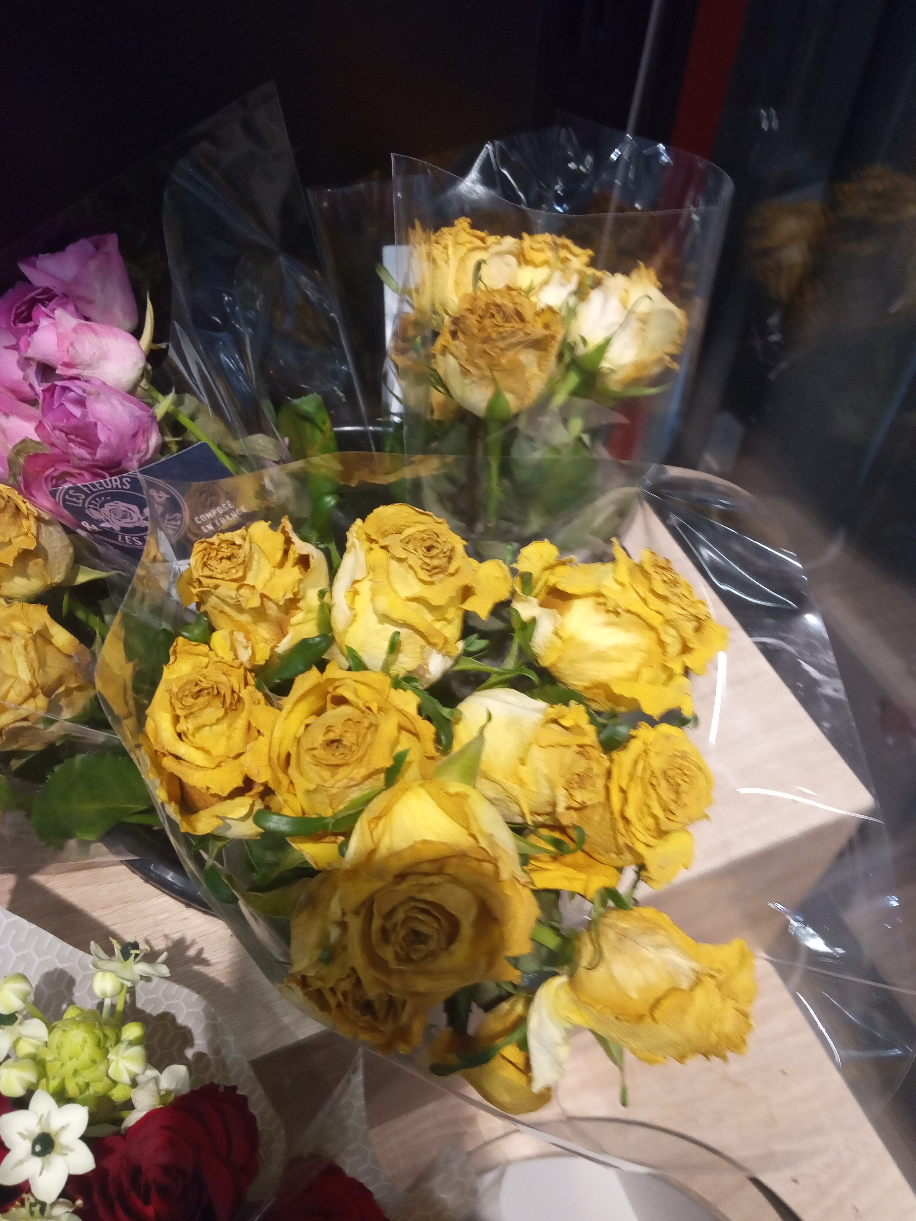 Honteux Jeune caissière avec gants en plastique très désagréable et pas polie du tout Fleurs complètement fanées et céréales plus bonne depuis 1 mois