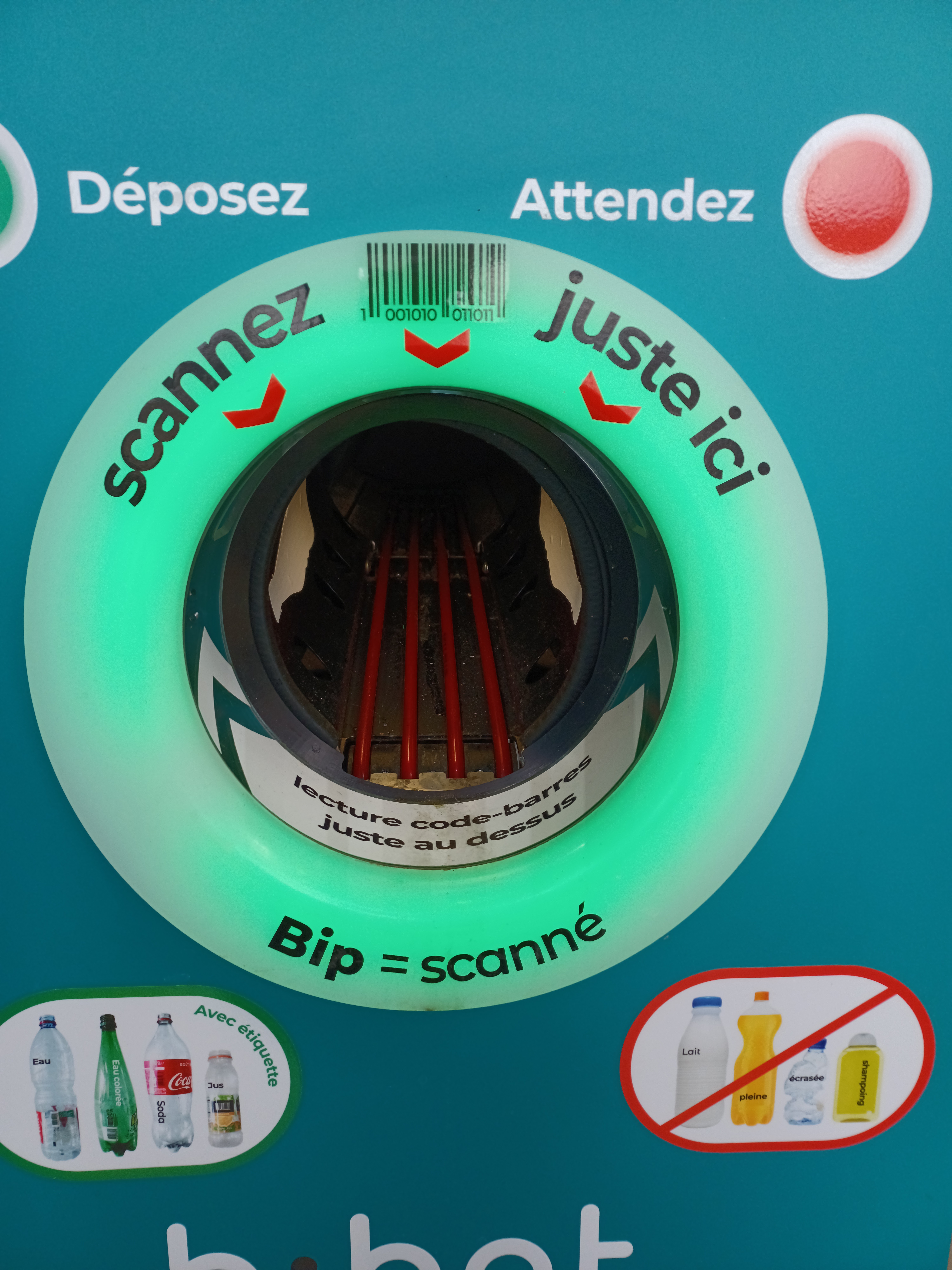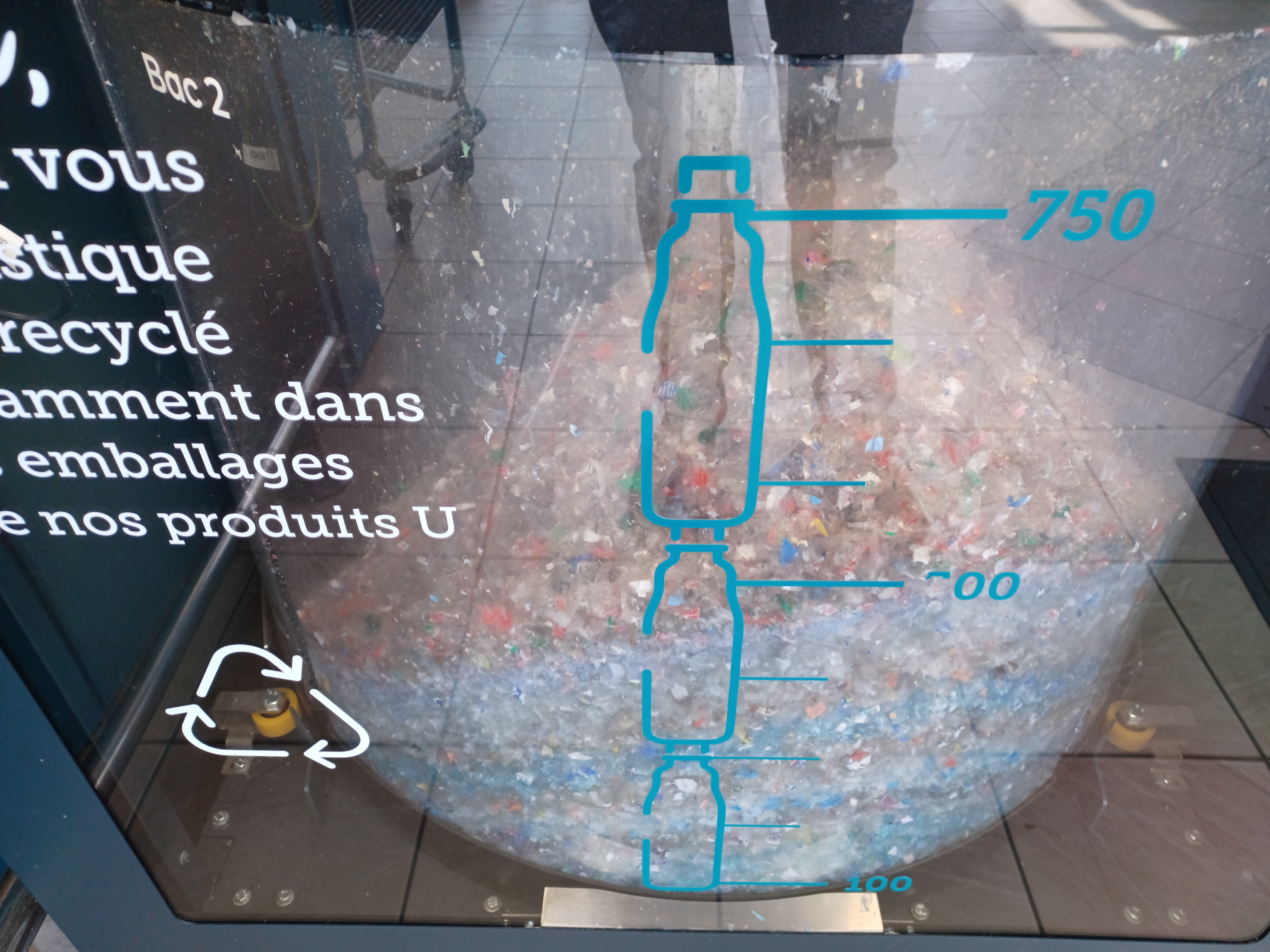 SUPER U SAINT-PÈRE SUR LOIRE. Possède un récupérateur de bouteilles D'EAU, UNIQUEMENT plastique TRANSPARENT CLAIR. NE FONCTIONNE PAS POUR LES AUTRES plastiques. Le système lis les codes barres de référence des bouteilles d'eau... Si la bouteille est lue par la machine, et conforme, le plastique est réduit en confétis de plastiques... Après, ils seront lavés, triés, et recyclés pour en faire de nouvelles bouteilles... VOIR fonctionner cette machine, est ludique, facile, rapide... En fin de cycle, vous VALIDEZ, et trouvez imprîmé votre nouveau BON de réduction recyclage, pour effectuer vos achats en magasin. J'aime beaucoup ce petit magasin axé sur l'essentiel. Les clients, se connaissent, se reconnaissent... échangent des conversations amicales... des conseils... Le personnel est avenant et aimable. Un magasin U, SAINT-PÈRE SUR LOIRE, avec un esprit d'autrefois que l'on aime parcequ'il rappelle notre enfance... ACCÈS PARKING FACILE...