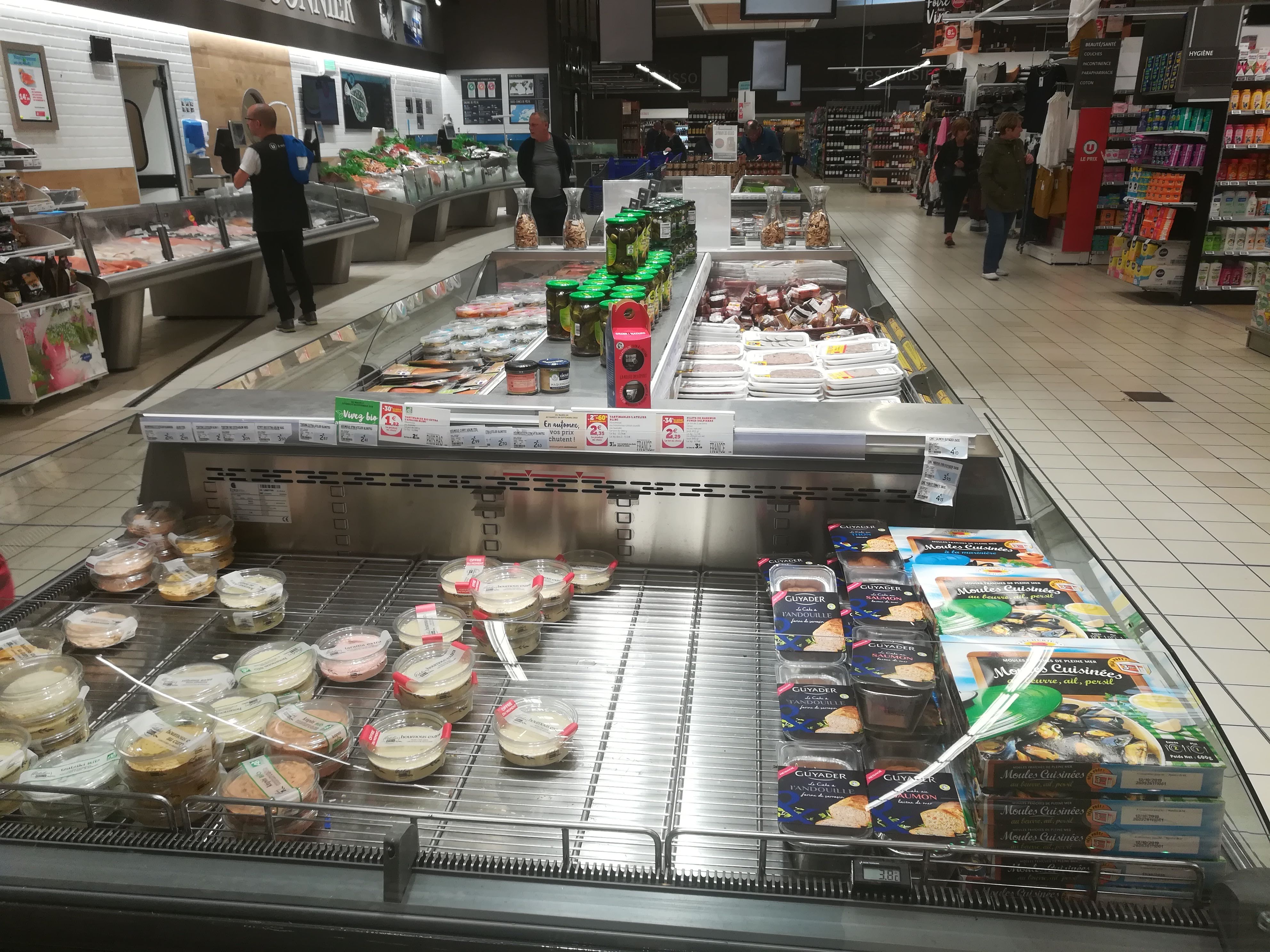 Mon supermarché préféré dans le coin : toujours propre, bien rangé, agréable, bien achalandé. Je travaille à Lannion et sur ma route il y a Leclerc, Intermarché et Lidl, mais chaque semaine je fais le détour par Trégastel pour faire mes courses à Super U, c'est dire. Je sais quand il y a des vacances scolaires quand je découvre que mon Super U est plein de monde et que je dois tout à coup faire la queue à la caisse 🥲🥲 Ah si, un scandale quand même : il n'y a pas d'offre de sushis 🍣 au coin poissonnerie (très beau par ailleurs, et qui rivalise de beauté avec la boucherie et sa cave à maturation, ou la cave à vin 🍷). Nota bene : Comme partout en France, il y a un maximum de retraités le vendredi soir à 18h quand on rentre du boulot alors qu'ils ont toute la semaine pour faire leurs courses, mais peut-être que ce n'est qu'une perception erronée de ma part ?? 🤷♂️