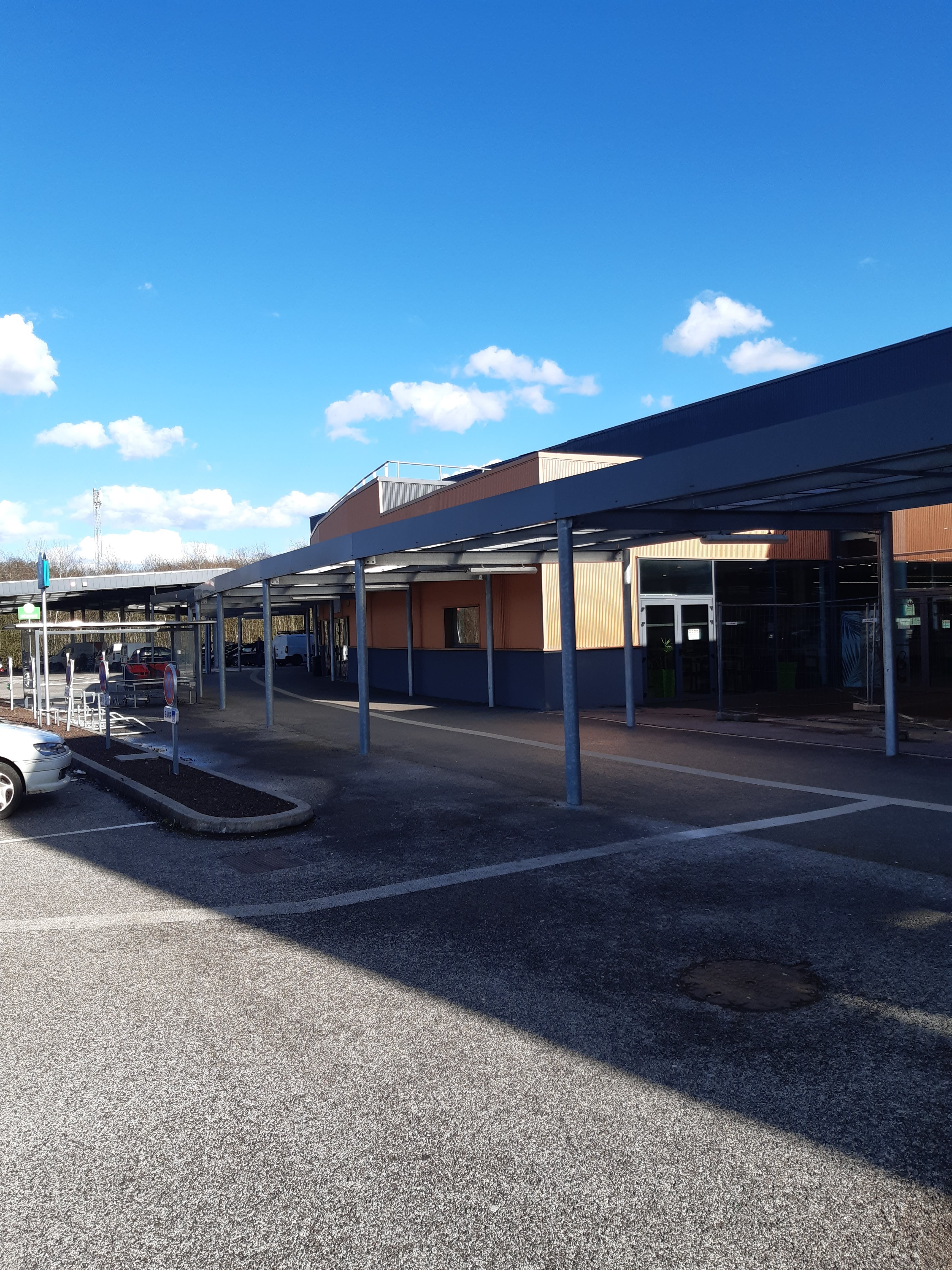 Très pratique par mauvais temps une partie du parking est couvert. Le personnel est toujours souriant. Magasin attractif rayon fruits et légumes frais mais un peu chers