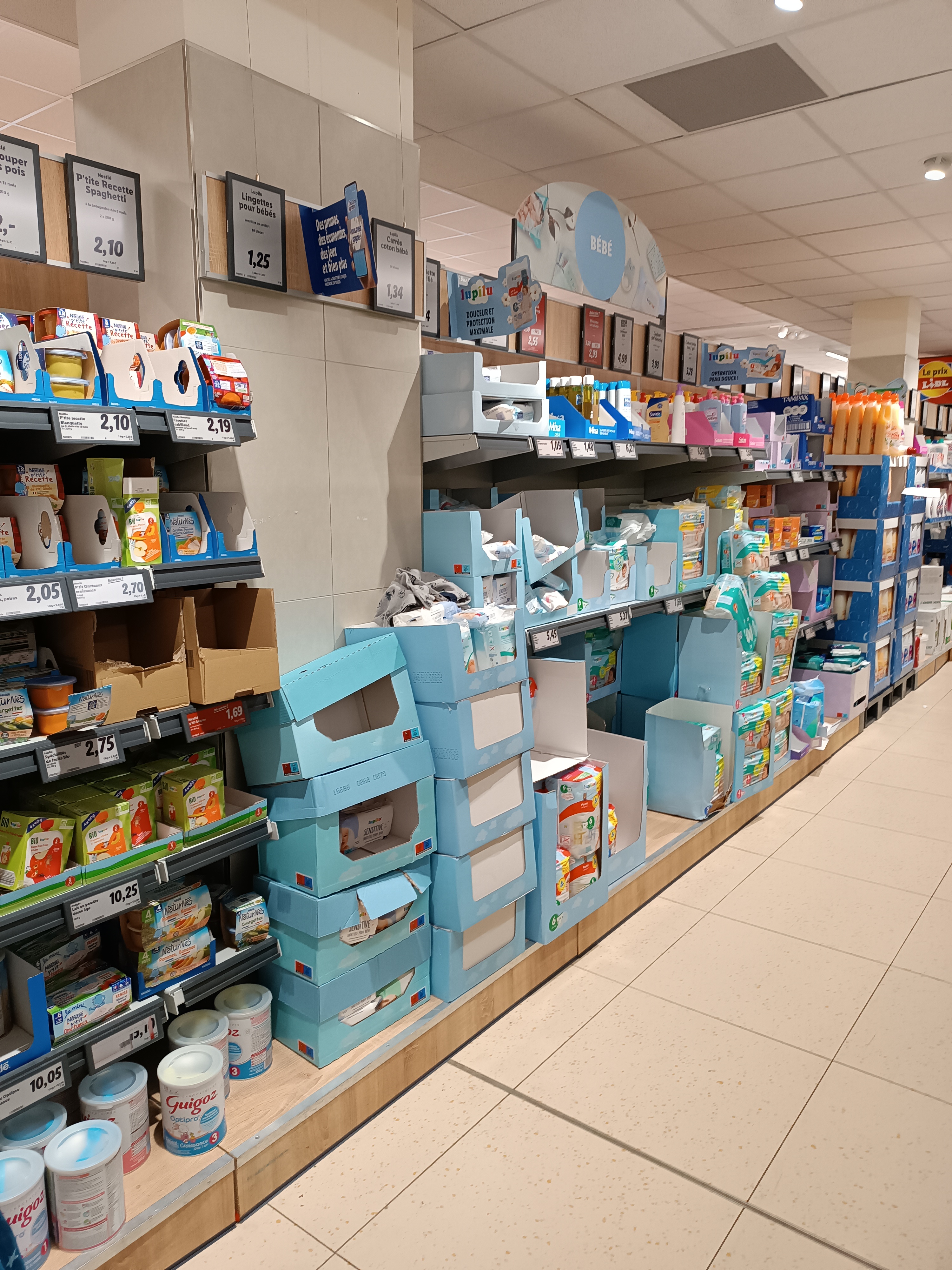 Les prix ont beaucoup augmenté. J'y suis allée avec des coupons de réduction insérés dans ma carte de fidélité ainsi que des promos. Lidl n'en a pas tenu compte c'était une erreur d'après eux. Pas beaucoup de stock. Bien sûr les marques sont bien présentes et aucune différence de prix avec les autres enseignes. Comme beaucoup de clients le disent Même Lidl a augmenté ça ne vaut plus la peine d'y aller. Sur leurs catalogue ou application ils offrent des coupons de réduction ou des promotions , on y va pendant les périodes où c'est valable et le ticket de caisse n'affiche rien. J'ai fait pour 60€ de courses. Même prix qu'ailleurs. Très déçue.