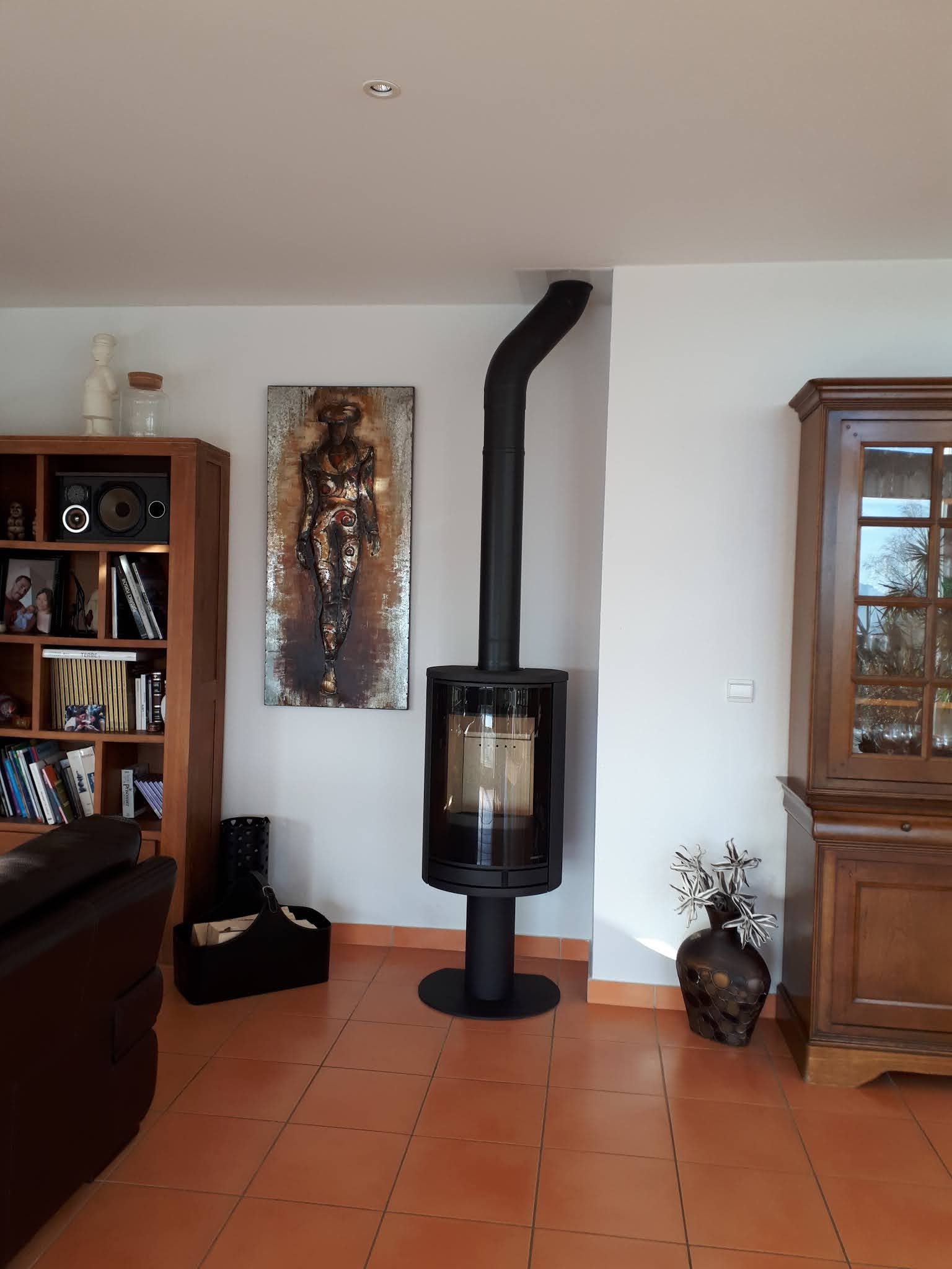 Poêle Jazz L installé en octobre 2023. Très bon conseil au magasin pour le choix du modèle. Nous avons eu un problème à l'installation. Un tuyau d'eau a été perçé lors de la création de l'arrivée d'air extérieure dans la dalle. La réparation a été prise en compte par les cheminées Da Costa.