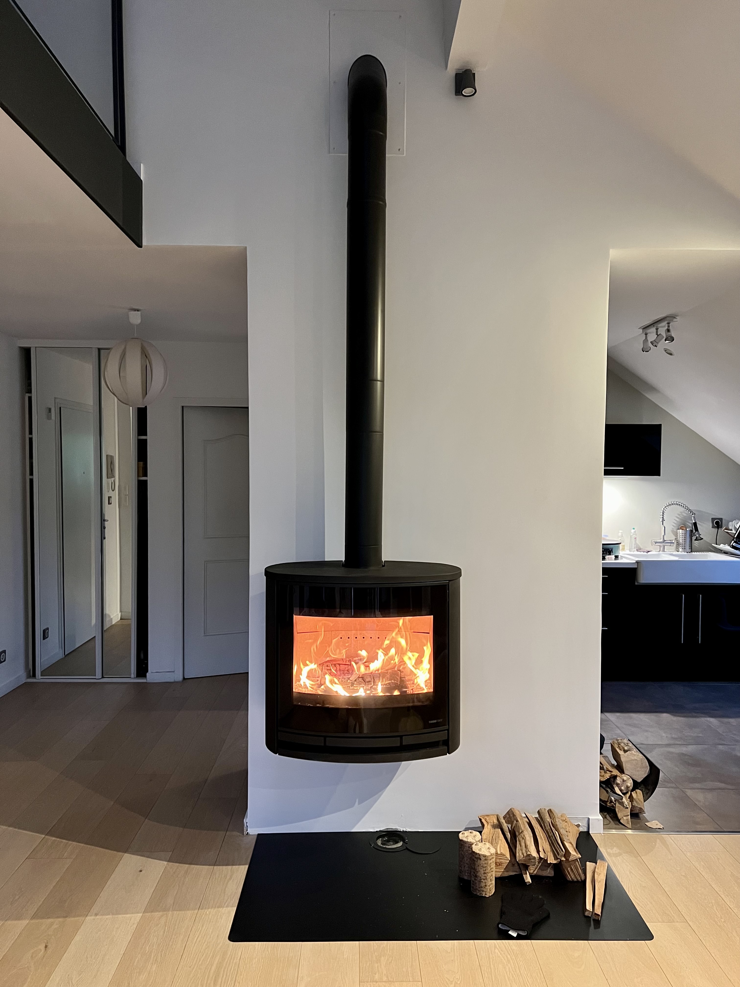 Remplacement d'un foyer ouvert par un poêle à bois suspendu. Large choix de produits et conseiller à l’écoute. Respect du devis et des délais. Chantier propre et équipe sympathique. A noter, chantier au 3ieme étage d’un immeuble sans ascenseur. En bref, nous sommes très satisfaits…