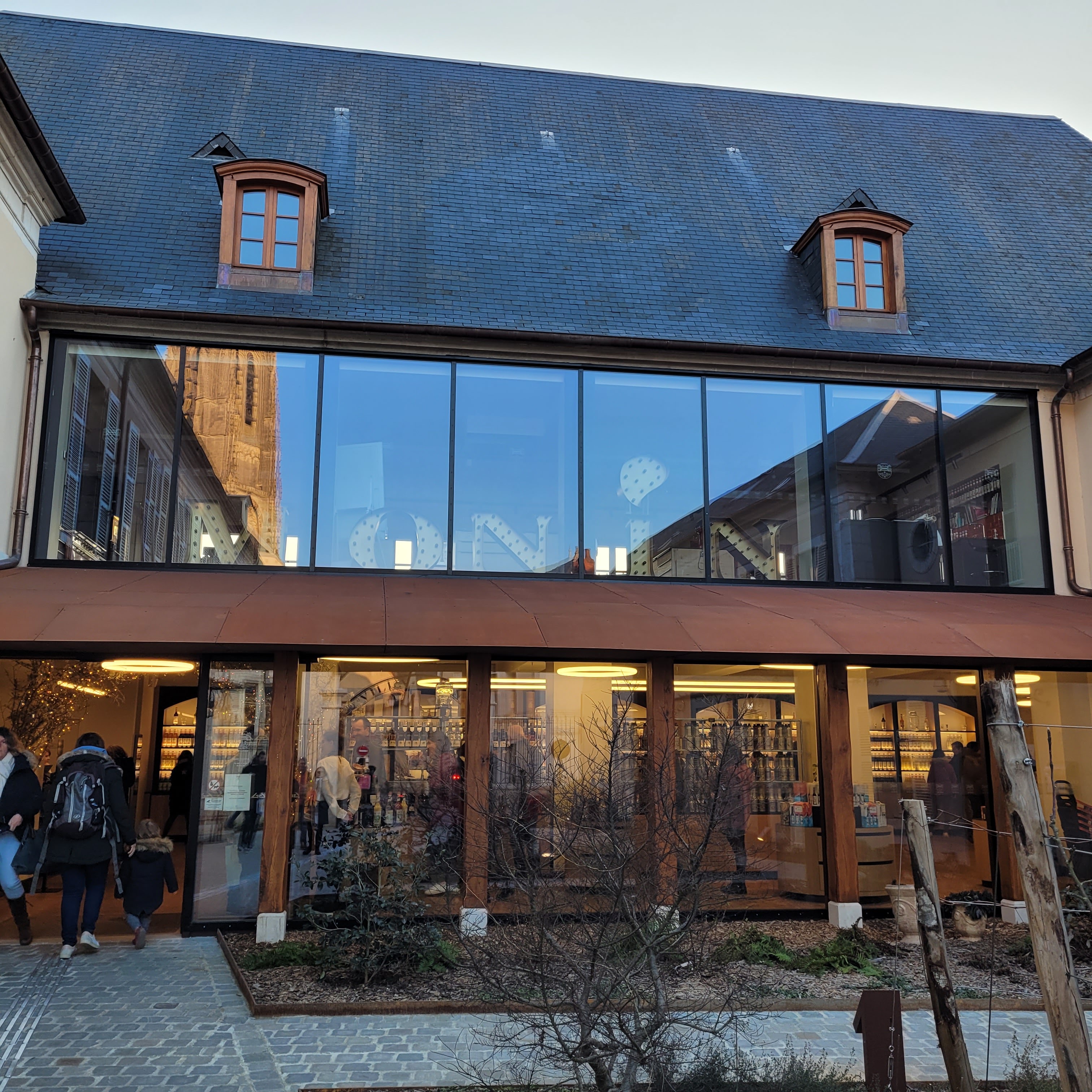 Vous trouverez toute la gamme de sirops Monin mais pas que ça, tous les autres produits ainsi que les produits du chocolatier Mercier. Restaurant, bar dans la même enceinte. Très beau bâtiment en U et au centre quand il fait beau, la terrasse est bien sympathique, à côté de la cathédrale.