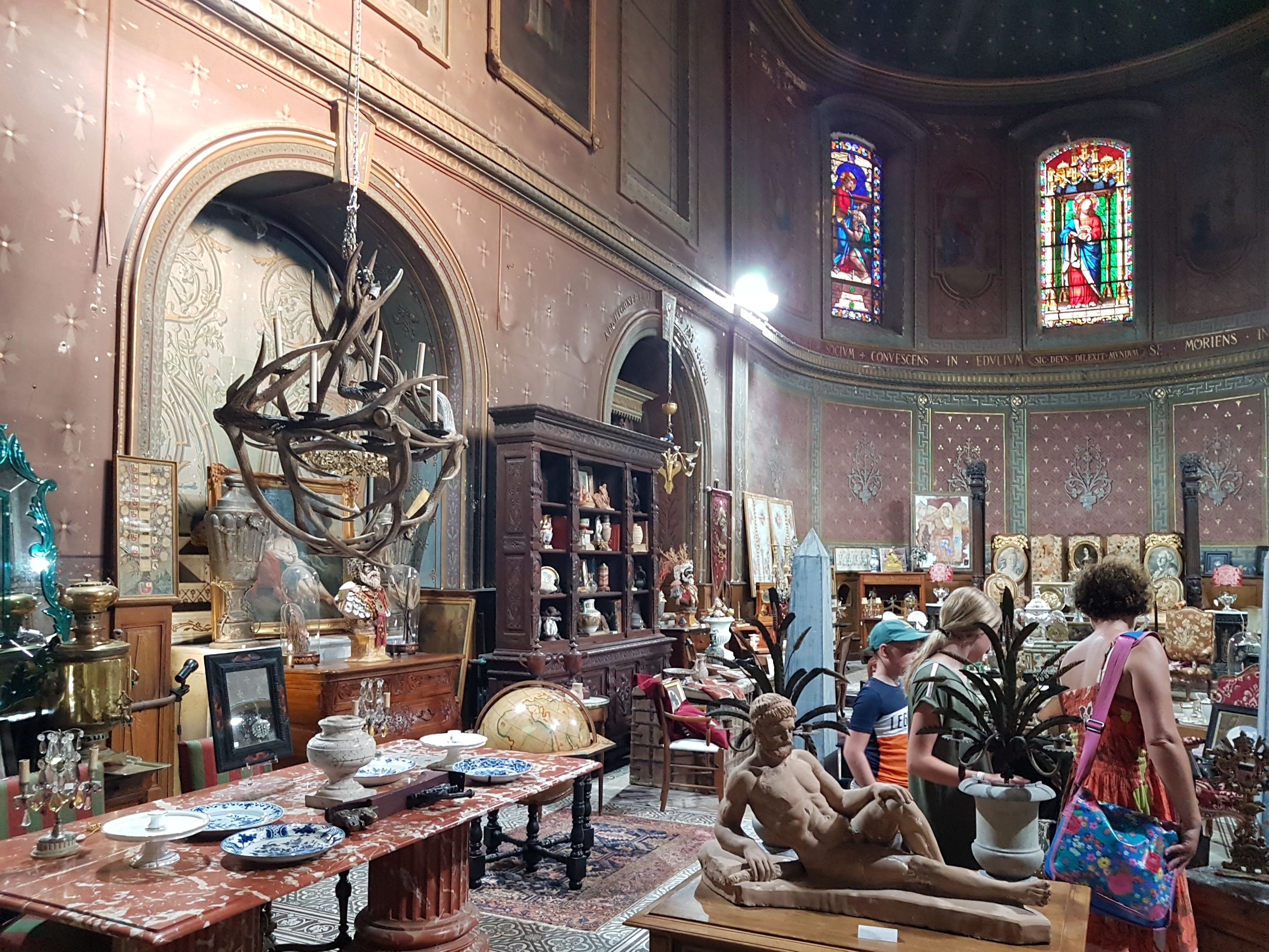 Dépaysement total, ballade dans une brocante à l'intérieur d'un ancien hôpital du 12eme siècles du pur plaisir