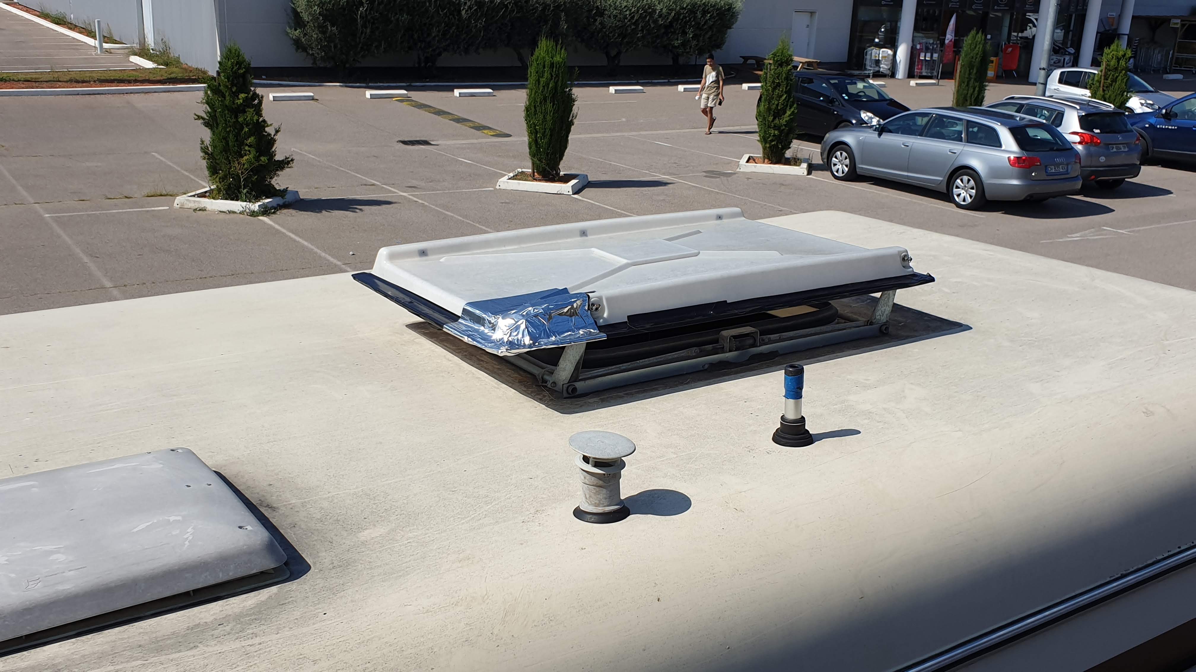 Je cherchais des articles pour réparer la lucarne de mon camping-car. Les scotchs de réparations toilés se trouvent à plusieurs endroits... Pas facile de s'y retrouver pour certains articles... Et un peu cher aussi, d'autant que la caissière était vraiment désagréable, pas souriante et prenant les gens de haut. Lorsque j'ai fini par trouver de quoi réparer je n'ai pas attendu de casser plus la lucarne en reprenant le route et ai donc réparé sur le parking. J'ai été un peu surpris de voir la police arriver pour me demander si je comptais passer la nuit là... M'aurait-on dénoncé ?