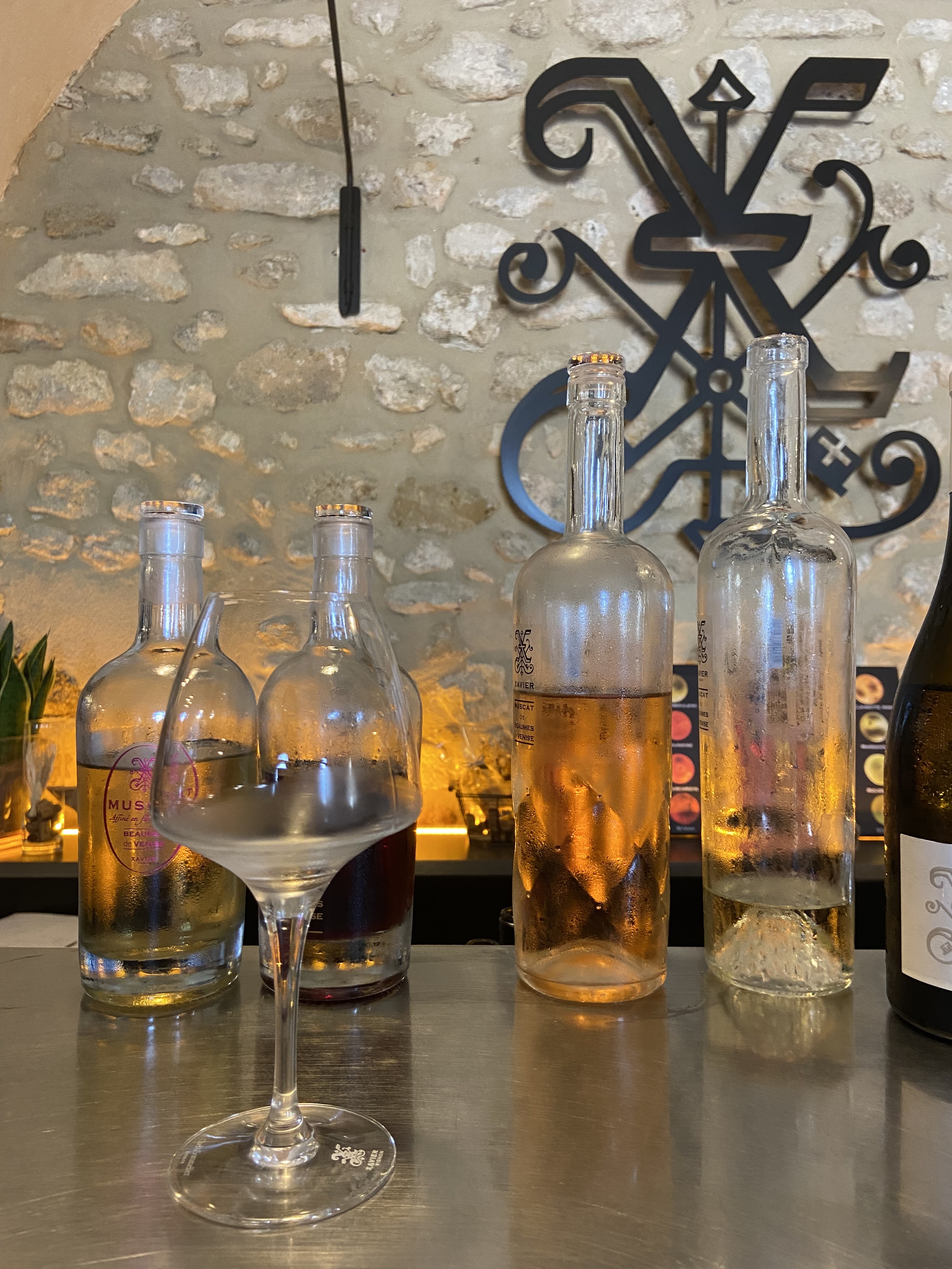 La salle de dégustation Xavier VIGNON est un joyau absolu de la Vallée du Rhône caché dans le pittoresque village de Beaumes-de-Venise. Estelle, la responsable de l'œnotourisme de la boutique, nous a gracieusement ouvert en dehors des horaires habituels (avec un arrangement préalable) pour s'adapter à notre programme de voyage, et ce fut vraiment une expérience merveilleuse. Ceux qui connaissent les vins Xavier VIGNON sauront qu'ils vont faire un voyage spectaculaire de saveurs créatives à travers les villages de la région du Rhône, et la boutique propose toutes les bouteilles encore disponibles à l'achat (dont beaucoup sont des éditions limitées). Estelle connaissait extrêmement bien les saveurs et le processus technique de production de chaque vin, et a également produit des images et des histoires de certains des aspects les plus excentriques des expériences créatives de Xavier VIGNON - comme la fermentation dans des ampoules de verre géantes ou un tonneau géant avec des fentes pour d'autres tonneaux. à l'intérieur! Les vins sont d'une qualité et d'un caractère uniques, et la passion du personnel qui les produit transparaît dans l'hospitalité du magasin. Vraiment une expérience au top pour laquelle nous reviendrons !
